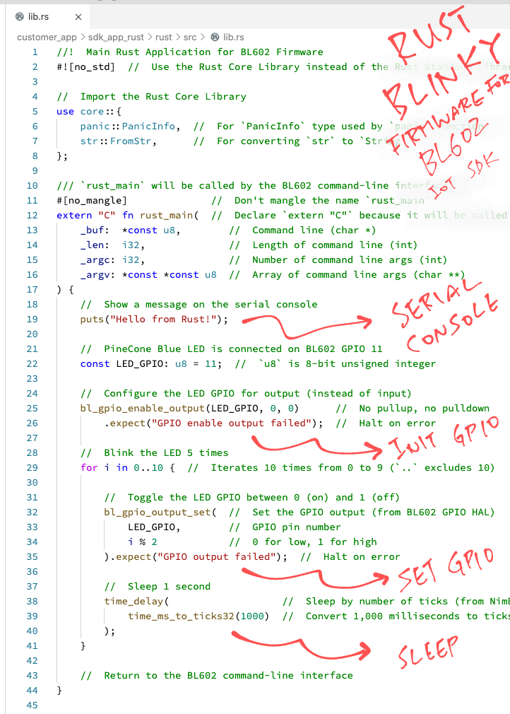 Here's our #RustLang Blinky Firmware for #RISCV #BL602 IoT SDK