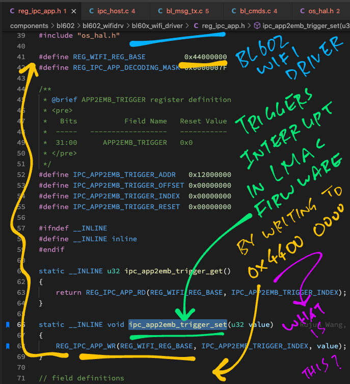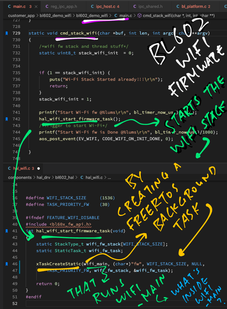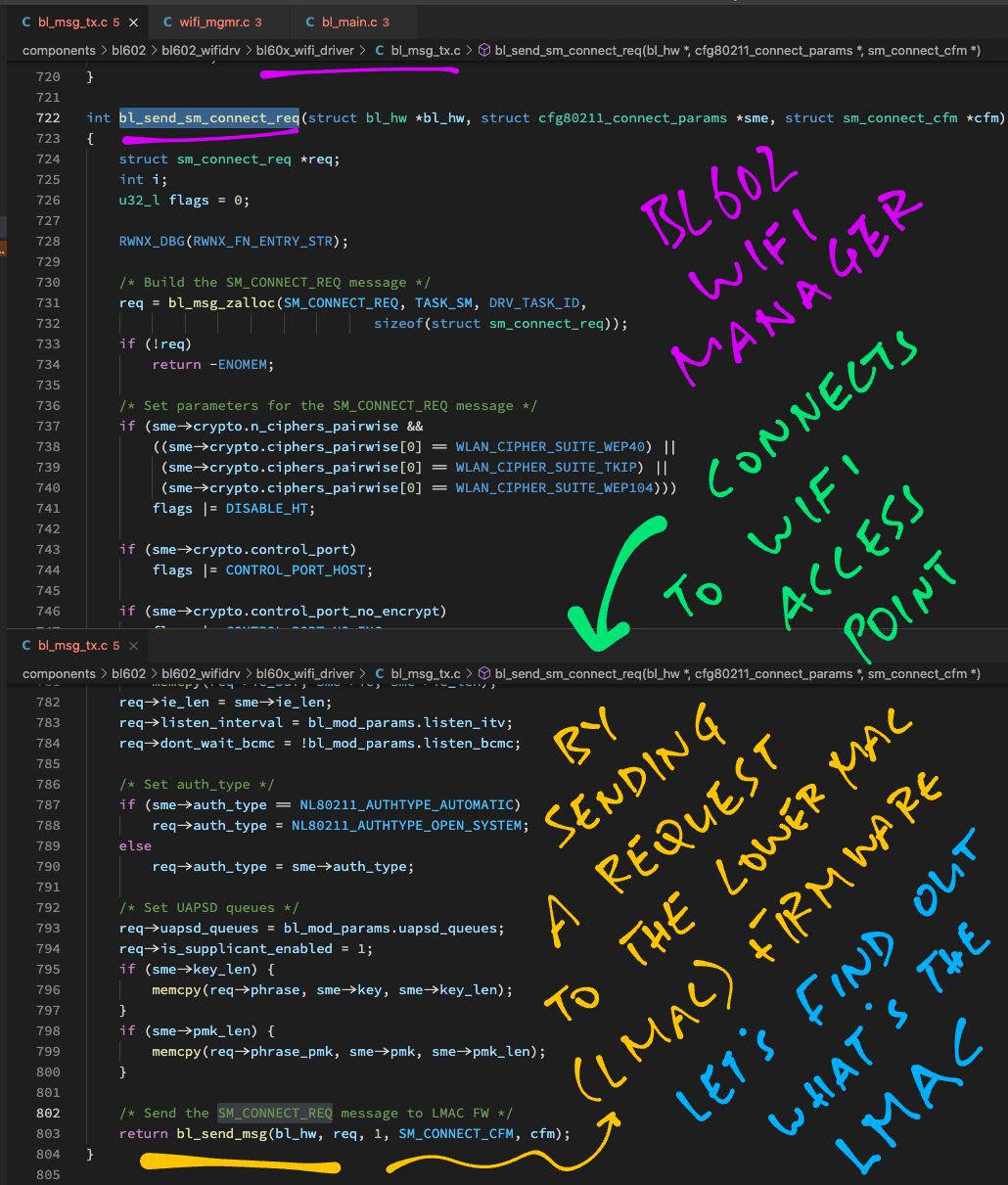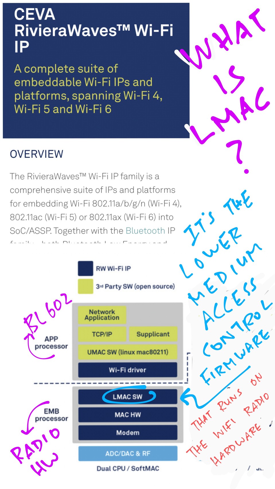 Now the #BL602 #WiFi Stack gets clearer ... We're actually reading the WiFi Driver Code by CEVA RivieraWaves! 💡