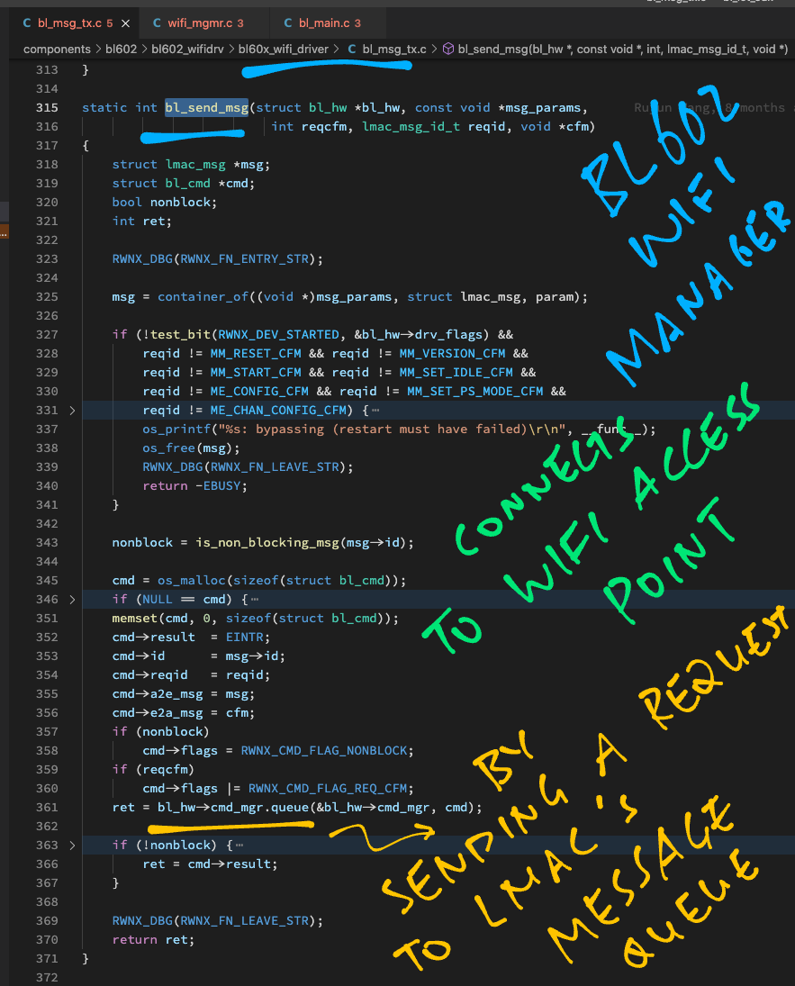 #BL602 #WiFi Manager talks to LMAC Firmware via Message Queue ... Let's find out how it works