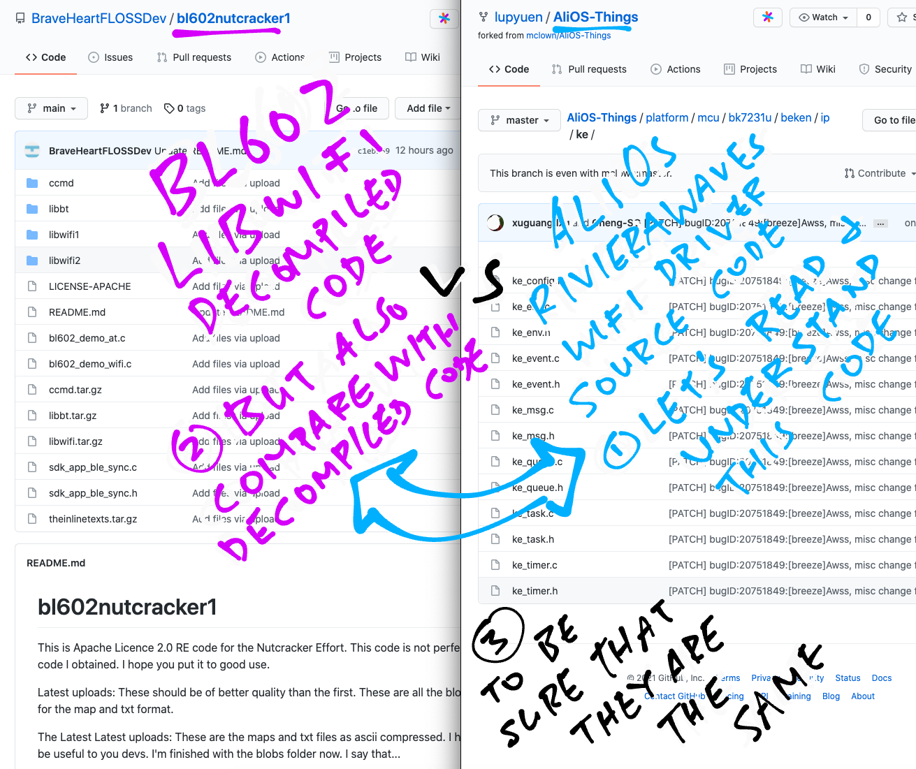 Matching the Decompiled #BL602 #WiFi Functions with AliOS / RivieraWave Source Code ... And identifying the differences