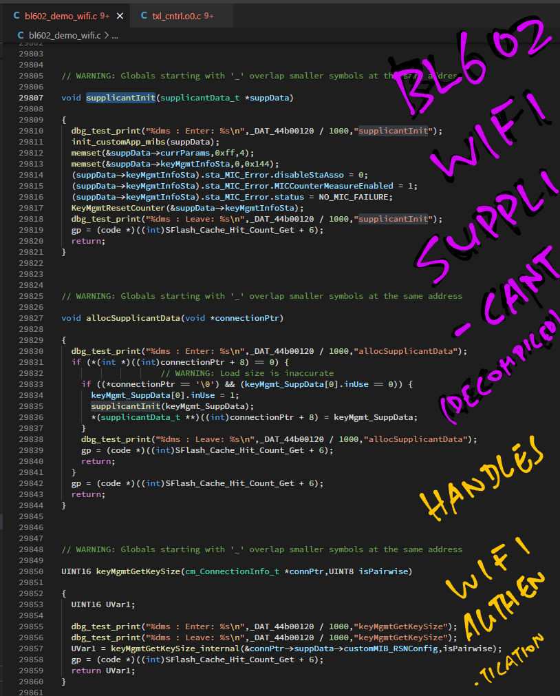 Here's the Decompiled #BL602 #WiFi Supplicant that handles WiFi Authentication ... Decompiled code looks readable