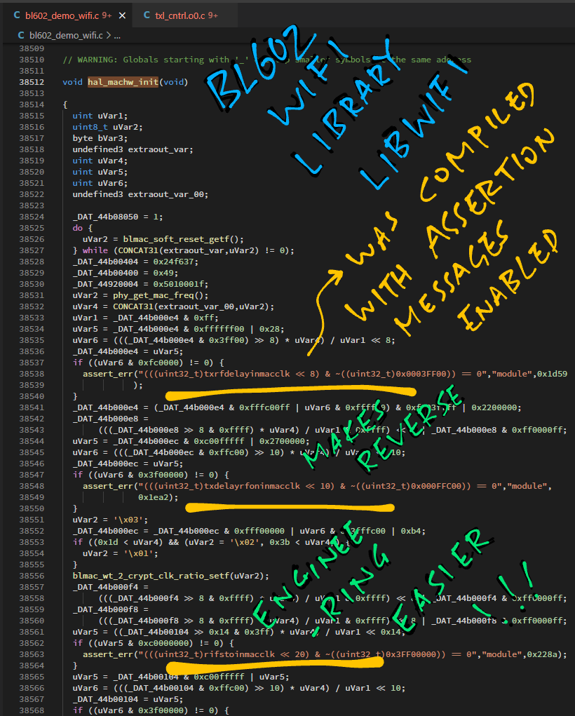 Thankfully #BL602 #WiFi Library libwifi was compiled with Assertions Enabled ... Makes Reverse Engineering simpler 👍