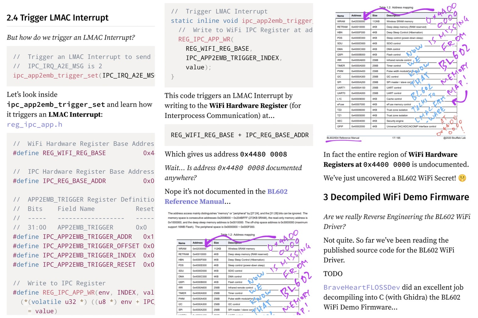 But 0x4400 0000 is NOT documented in Reference Manual! 😲 Now we know a secret ... BL602 talks to LMAC Firmware at Address 0x4400 0000 🤫