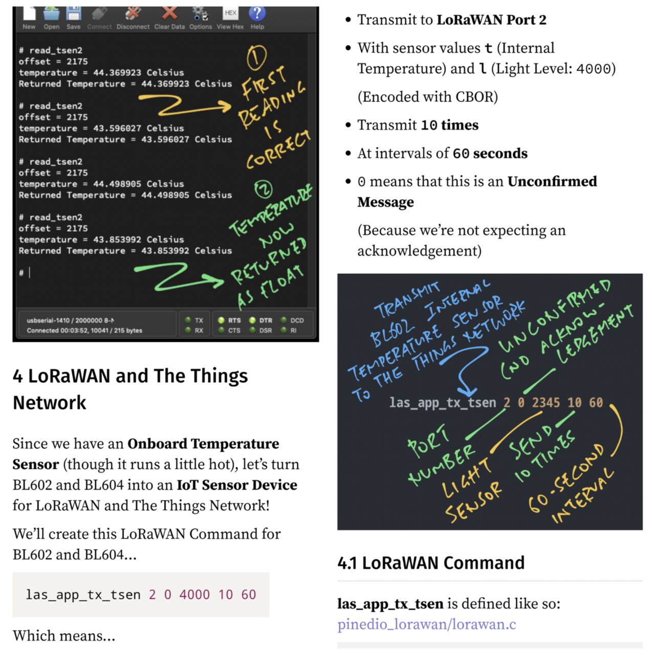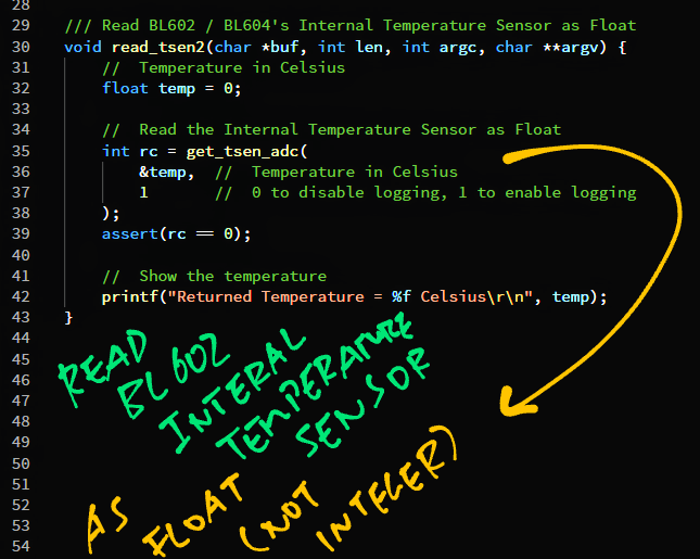 Here's how we read the Internal Temperature Sensor on and BL604 SoCs ... And transmit to over LoRaWAN