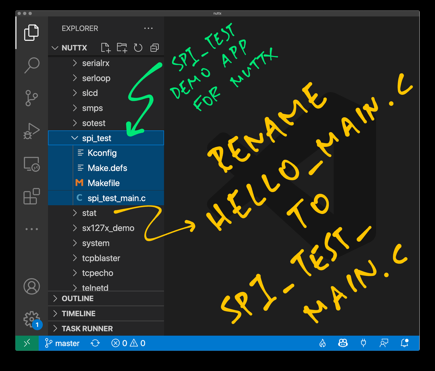 We create the "spi_test" Demo App in #NuttX ... By copying the "hello" Demo App
