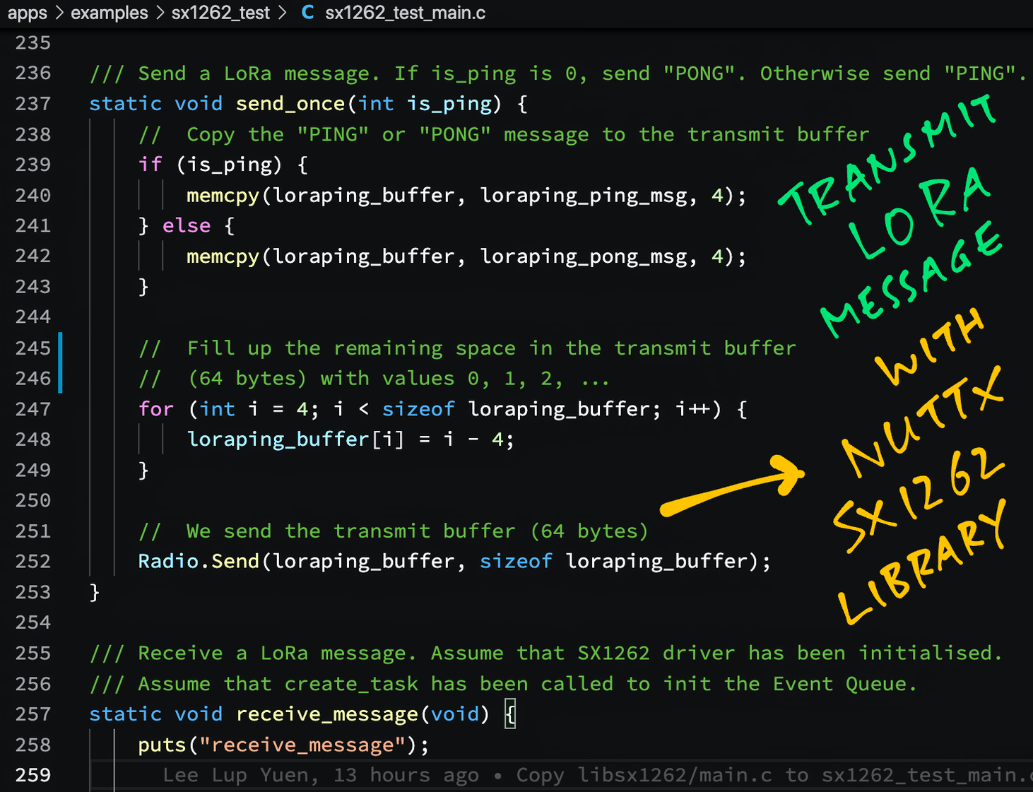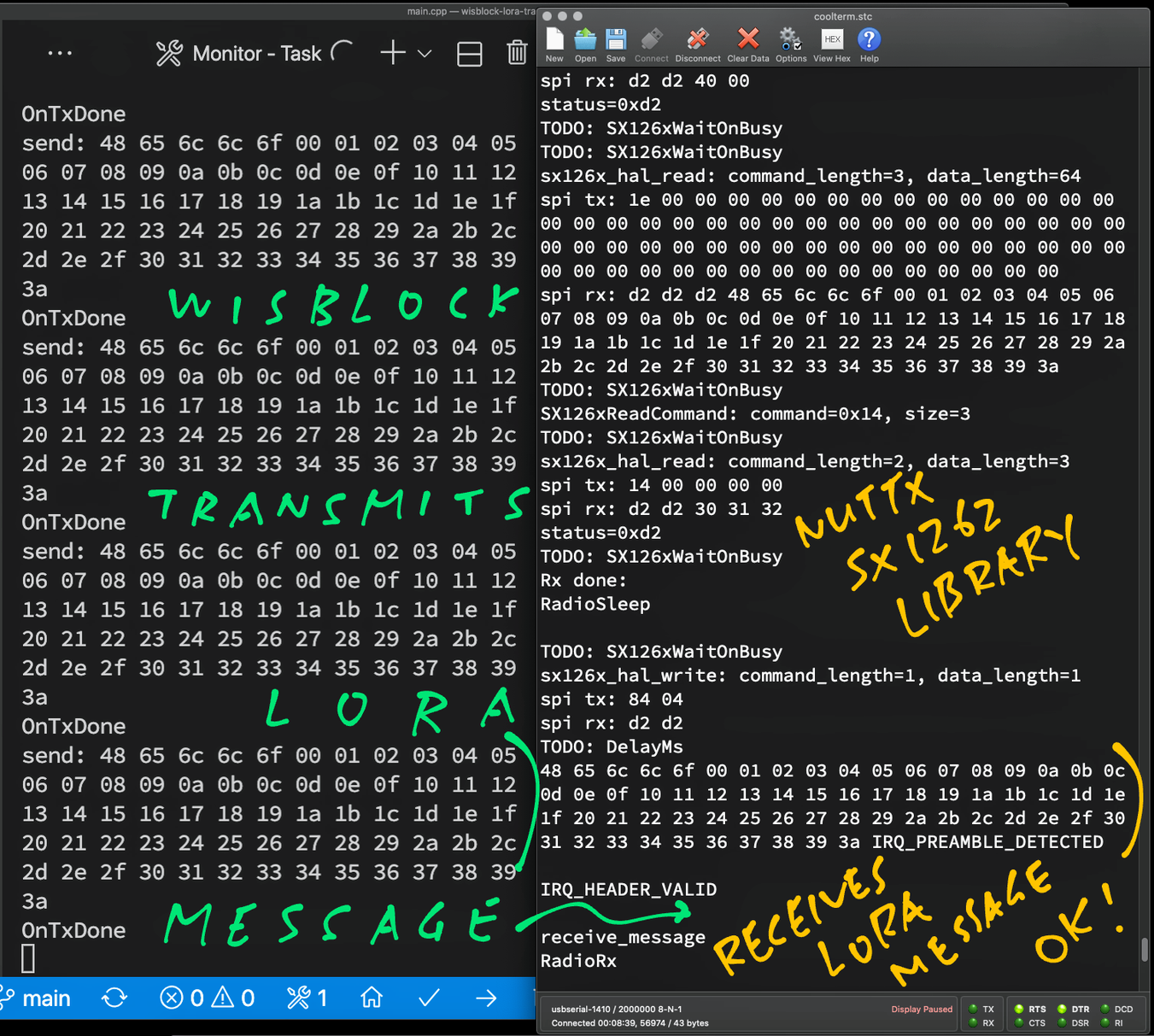 Here's how we send a #LoRa Message on #NuttX OS