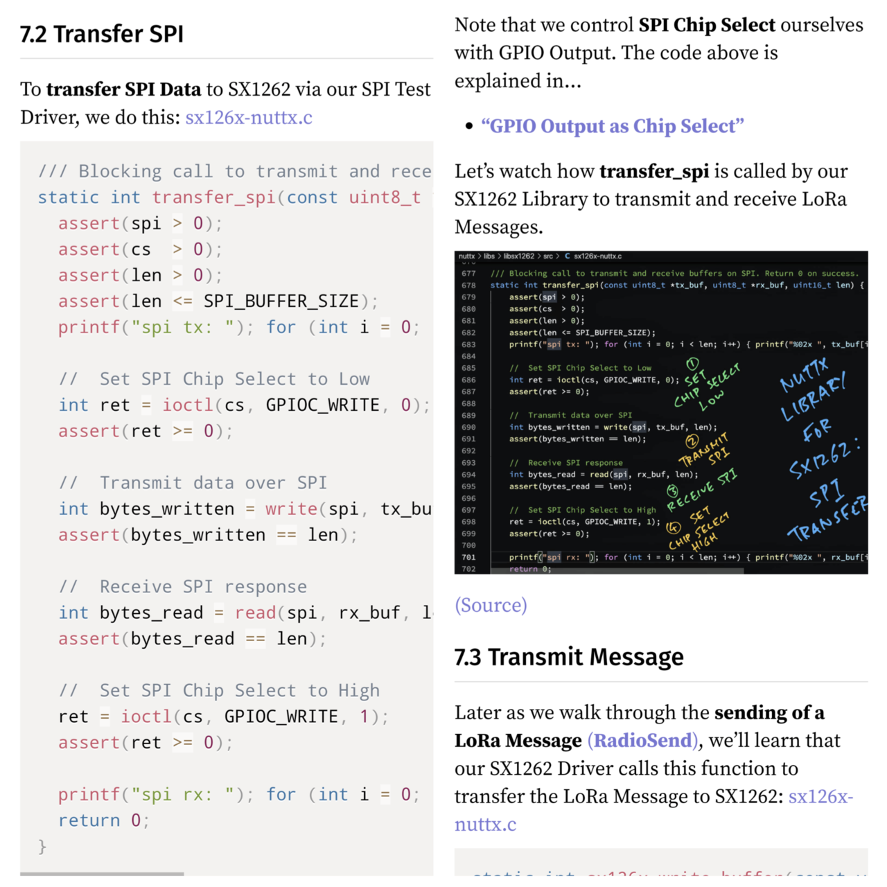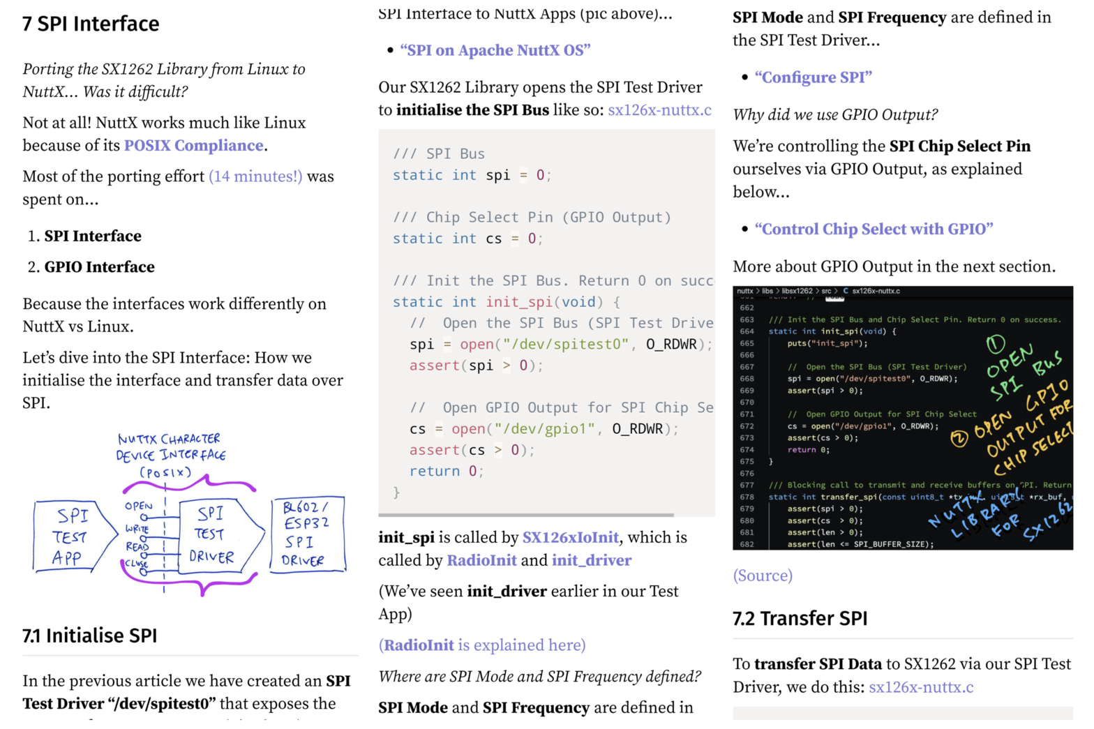 Our #NuttX SX1262 Library calls the SPI Test Driver to transfer data over SPI
