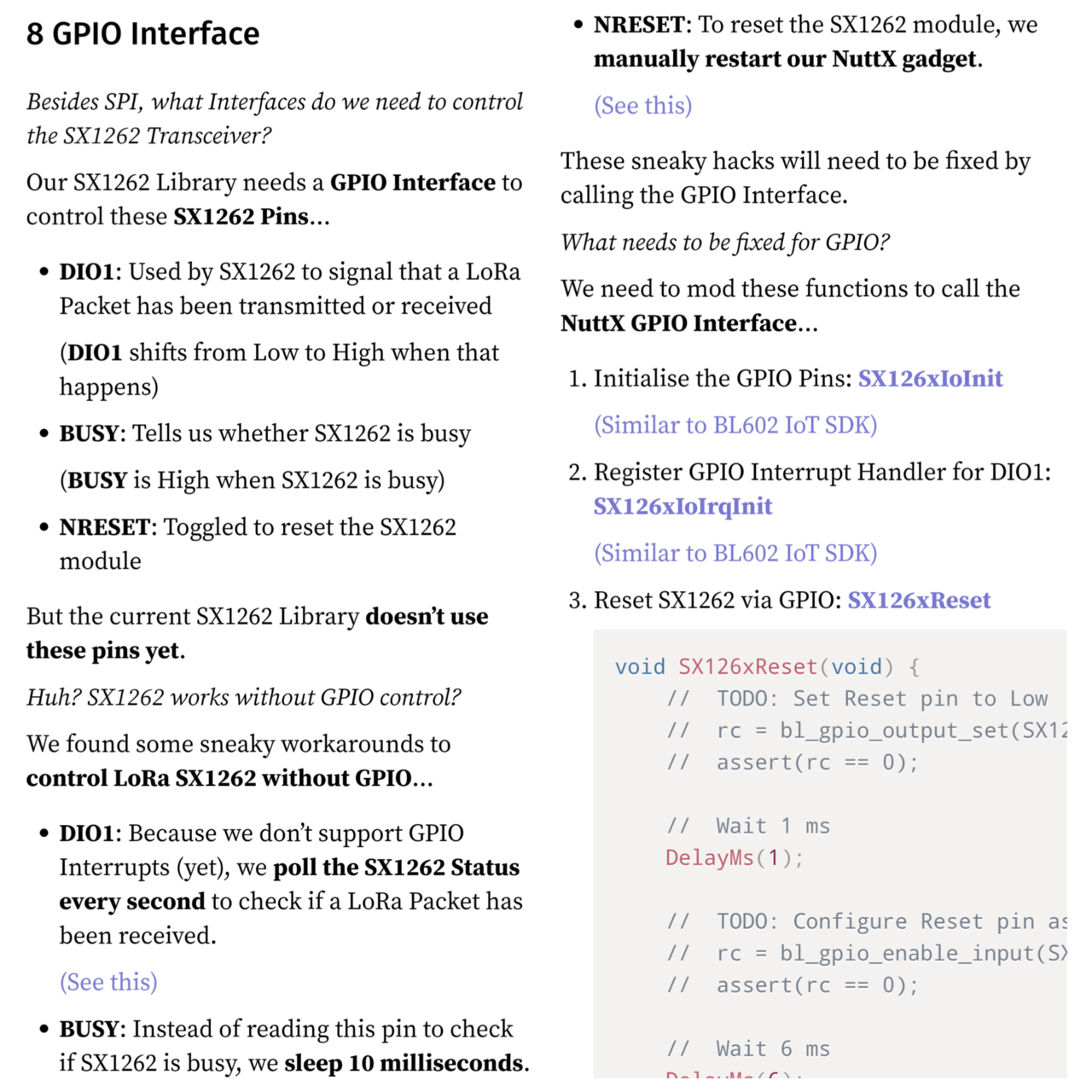 Our #NuttX SX1262 Library shall handle GPIO Interrupts someday