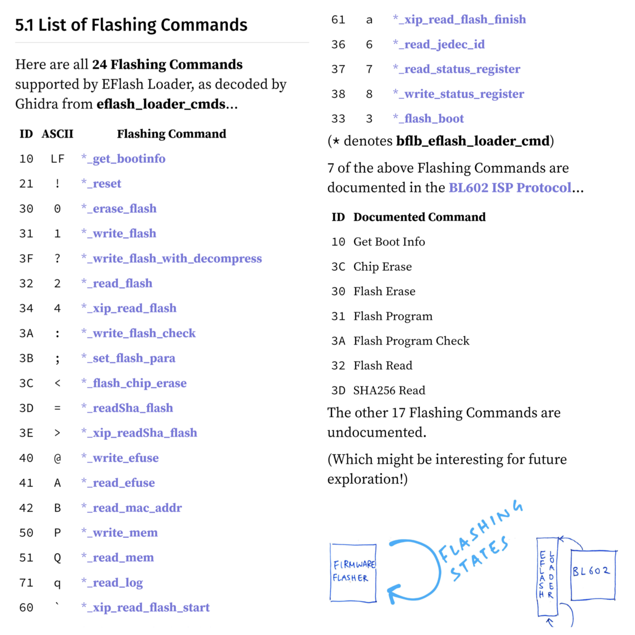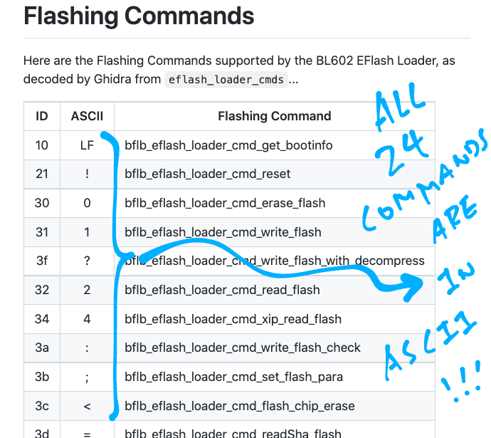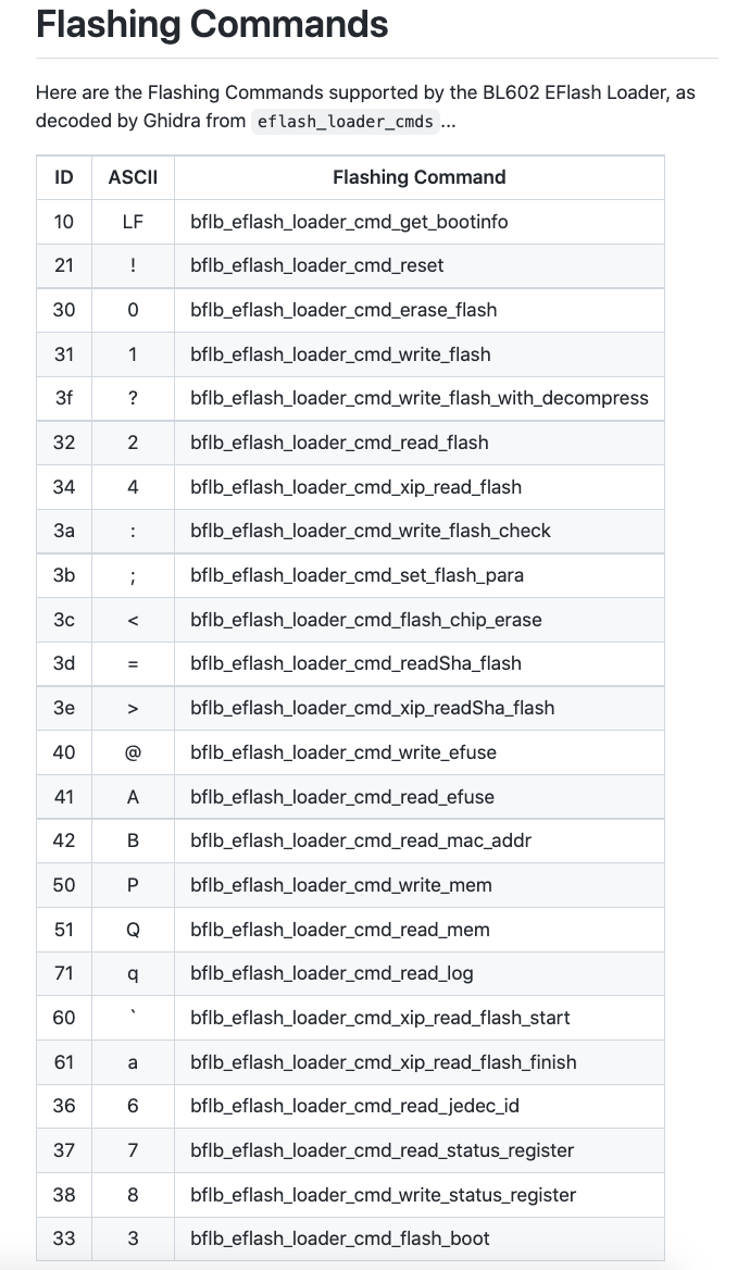 Here are the 24 Flashing Commands supported by the #BL602 EFlash Loader ... Thanks to Ghidra 🎉