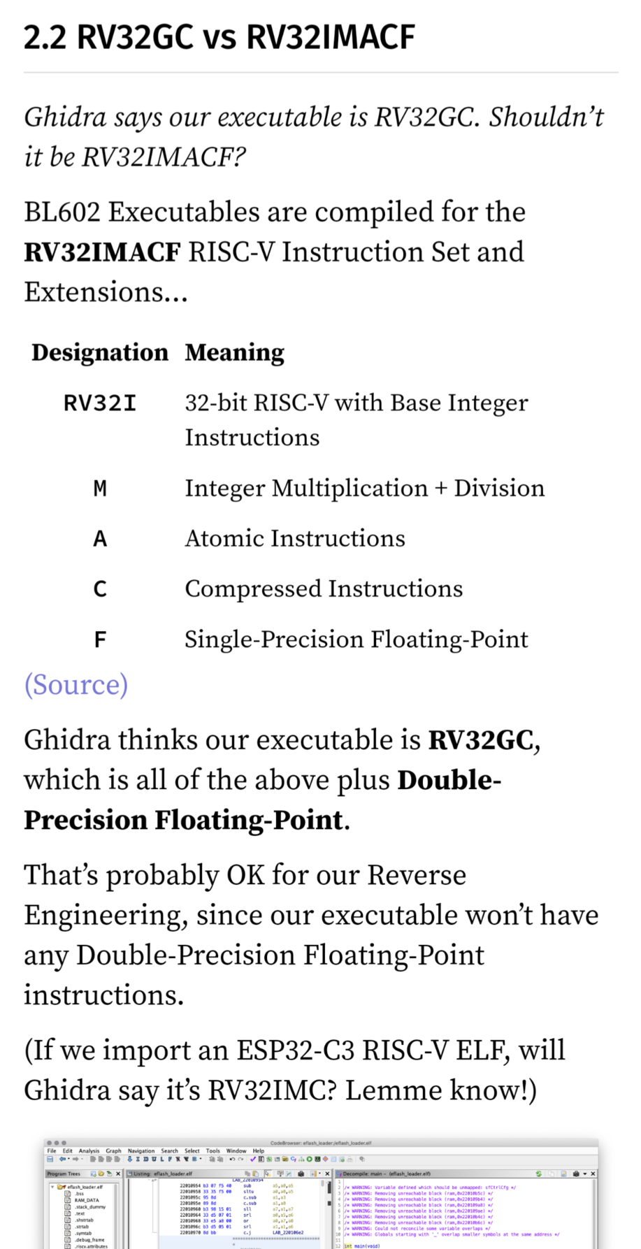 #Ghidra guesses that our #BL602 code is RV32GC ... Close enough! 👍