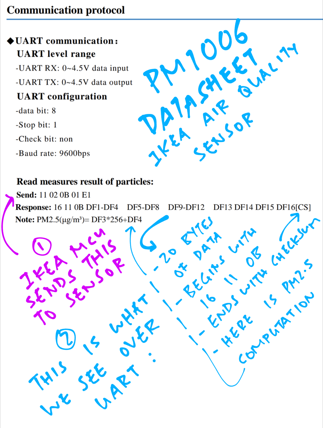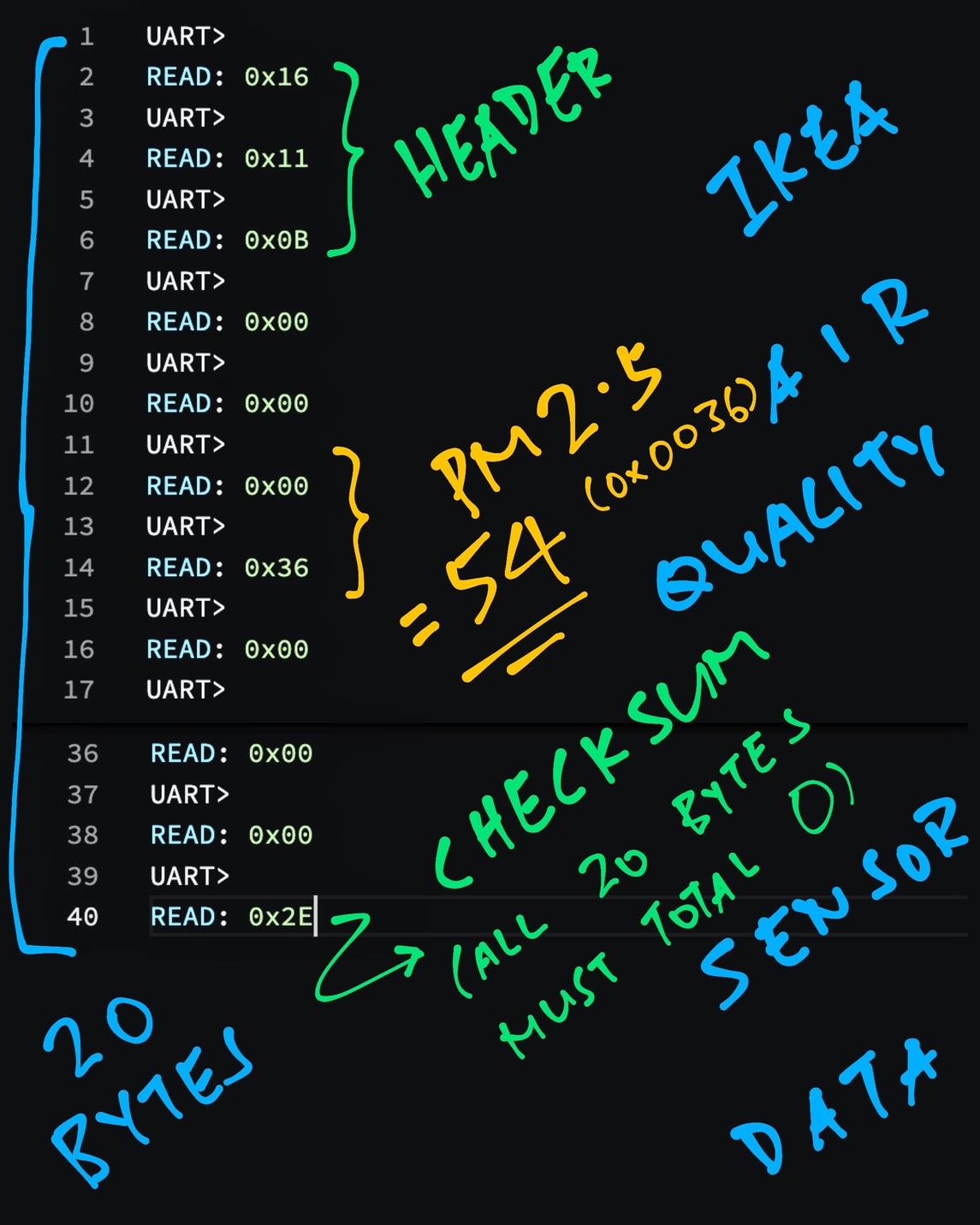 Here's how we decode the UART Output from IKEA Air Quality Sensor ... Based on the PM1006 LED Particle Sensor Datasheet