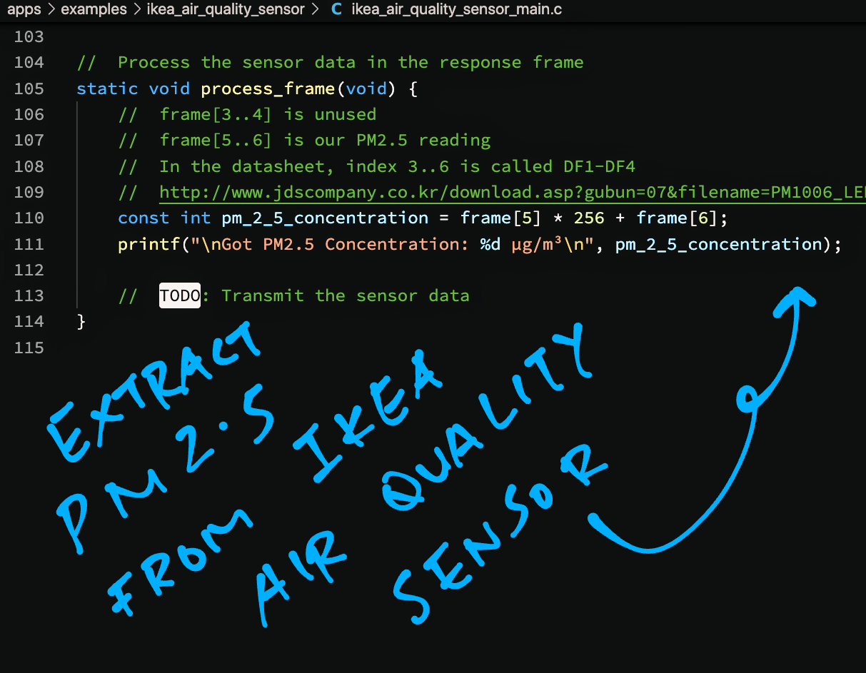 Here's how our #NuttX App extracts the PM 2.5 reading from IKEA Air Quality Sensor