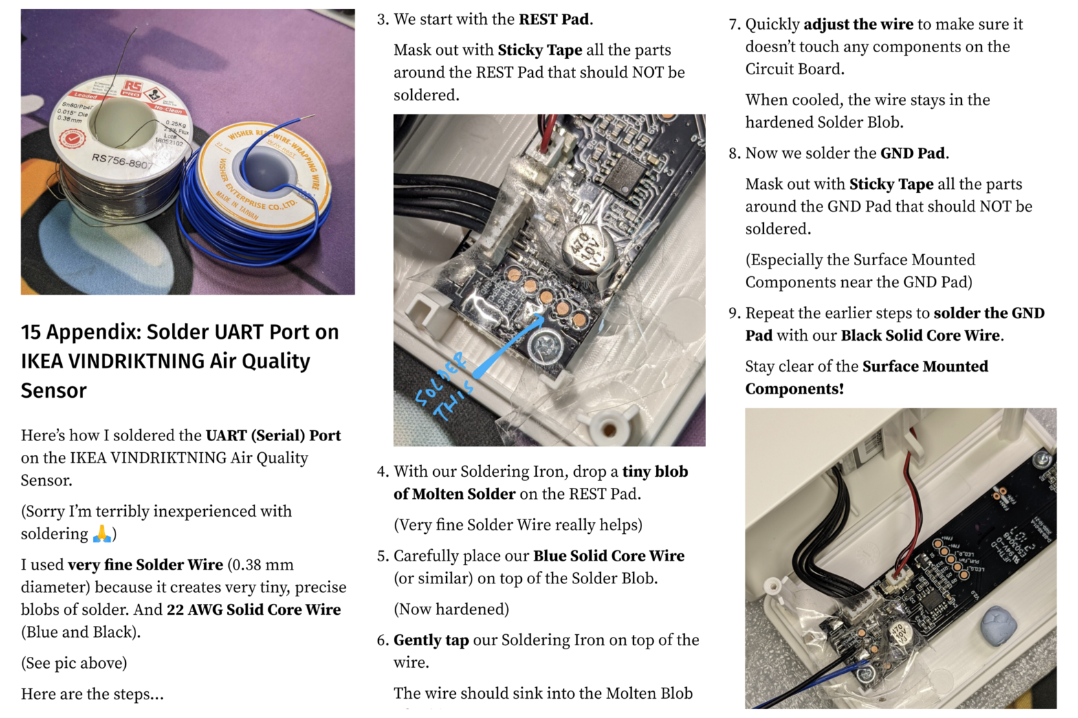 Here's how I soldered the UART Port on IKEA Air Quality Sensor