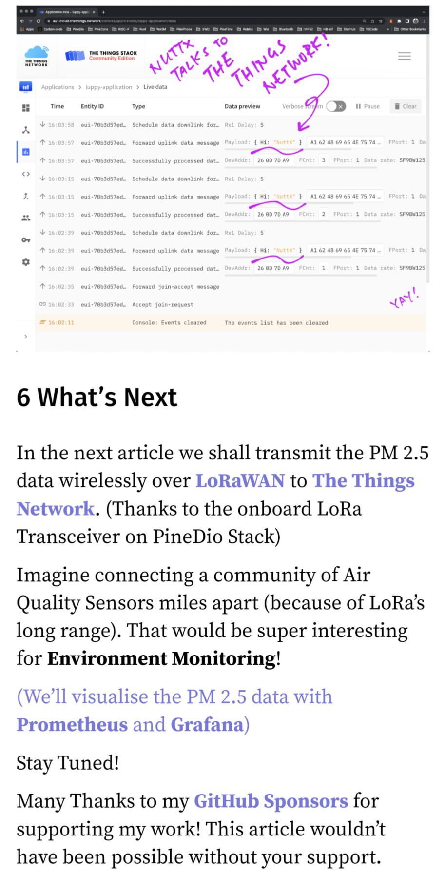 What's Next for IKEA Air Quality Sensor on Apache #NuttX OS ... LoRaWAN, The Things Network, Prometheus and Grafana!