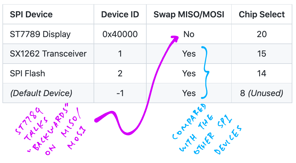 #BL602 #NuttX SPI Driver looks up the SPI Device Table to 1️⃣ Swap MISO and MOSI Pins 2️⃣ Flip the Chip Select Pins