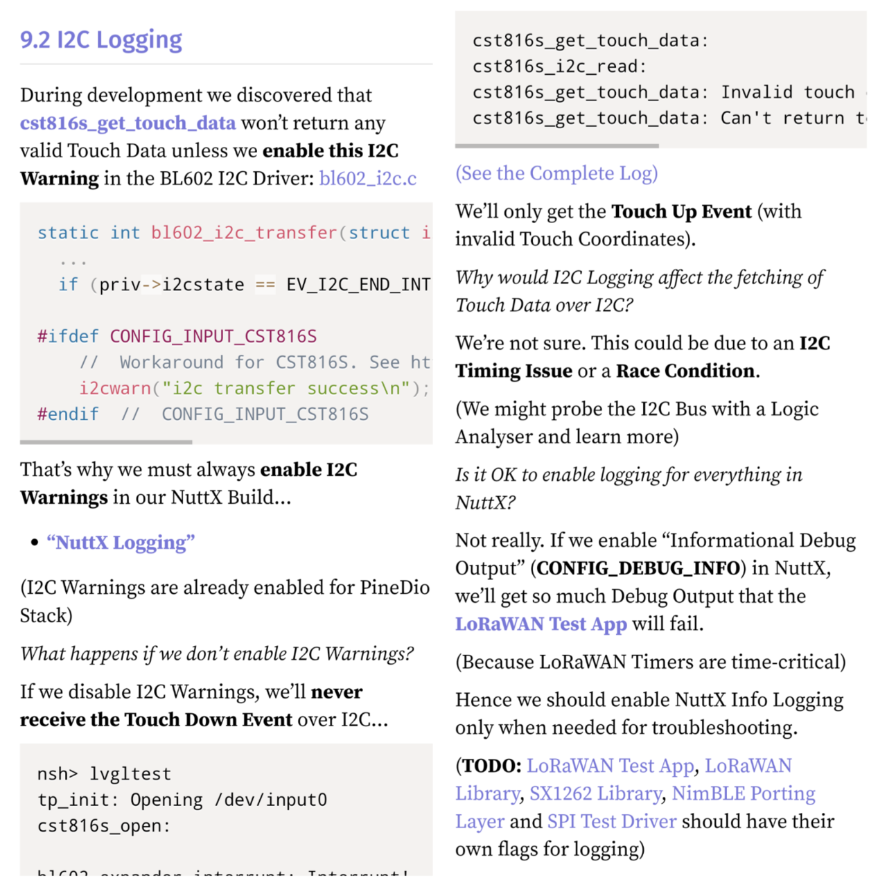 Wonder why we must enable I2C Logging ... Or #PineDio Stack's Touch Panel Driver will fail 🤔