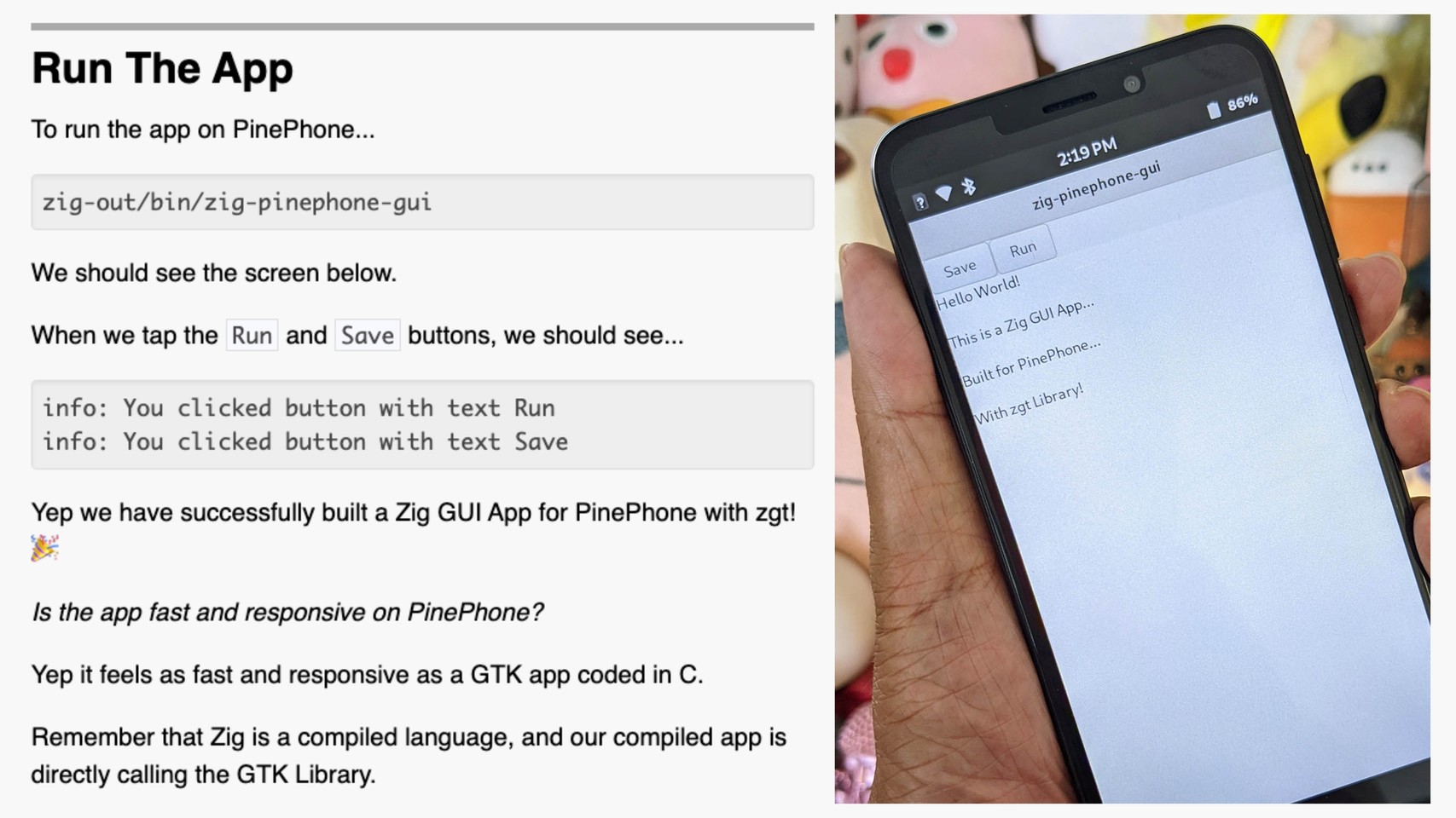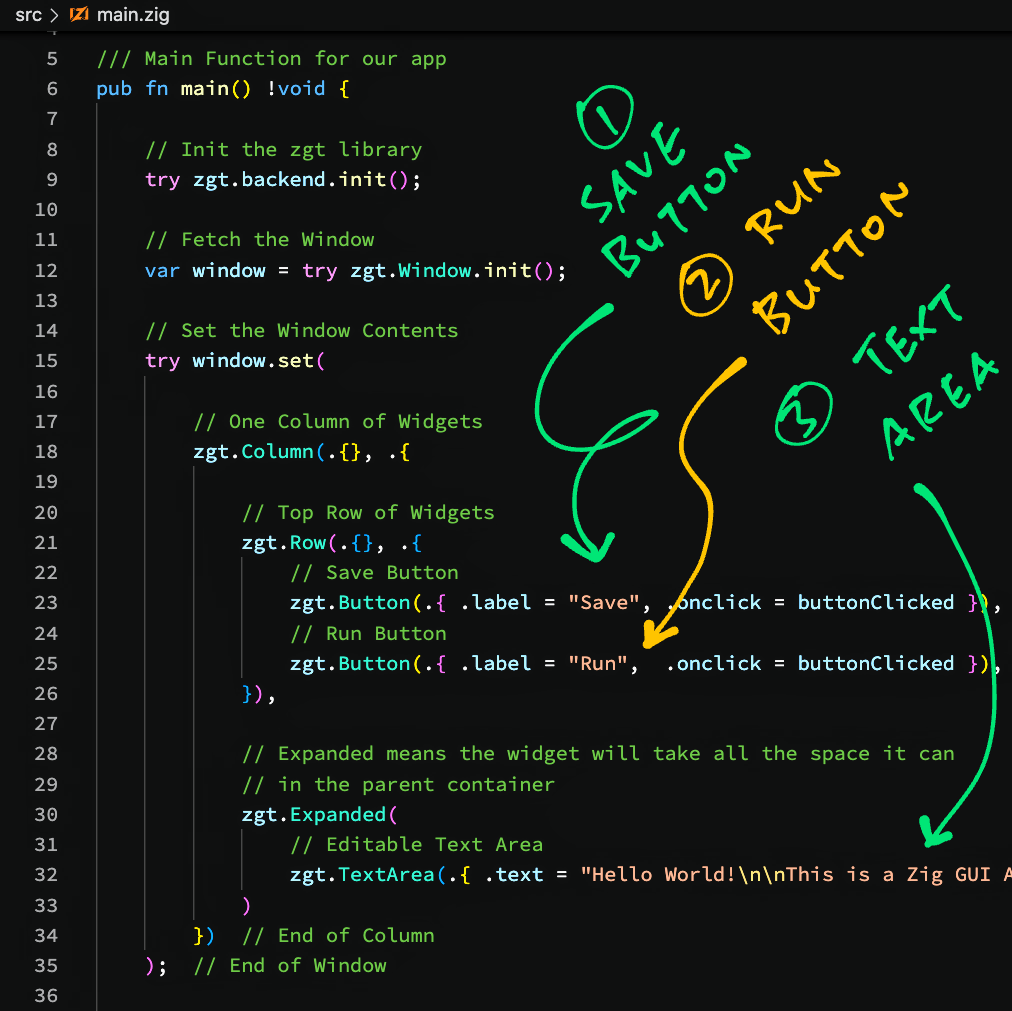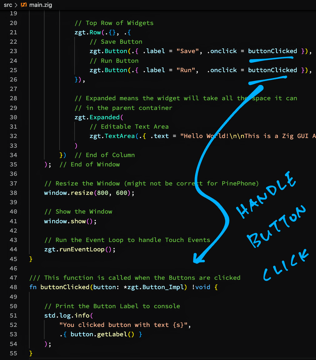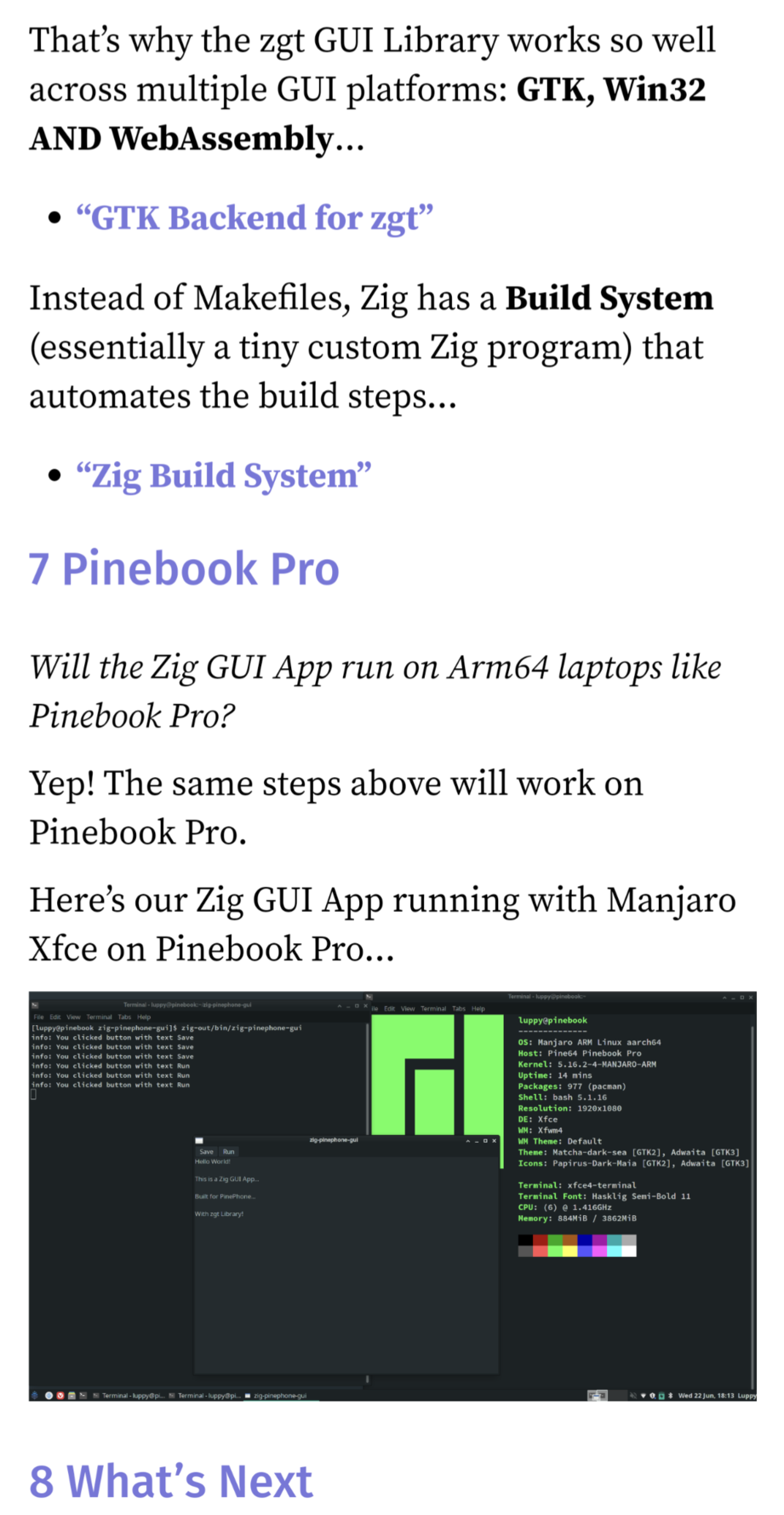 Our App will call the zgt GUI Library ... Which works with Linux (GTK), Windows and WebAssembly
