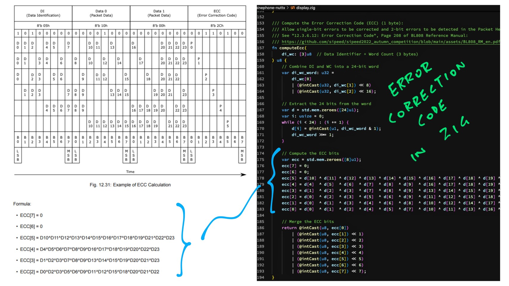 #ZigLang computes the Error Correction Code for a MIPI DSI Packet ... In our #PinePhone Display Driver for Apache #NuttX RTOS
