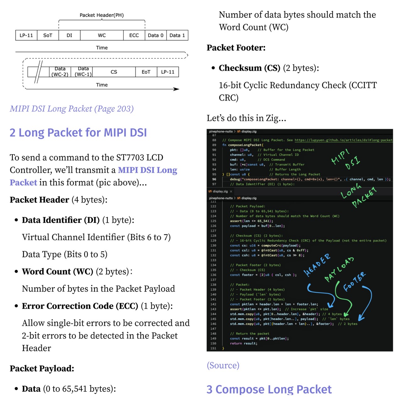 #ZigLang combines Header, Payload and Footer ... To make a MIPI DSI Long Packet