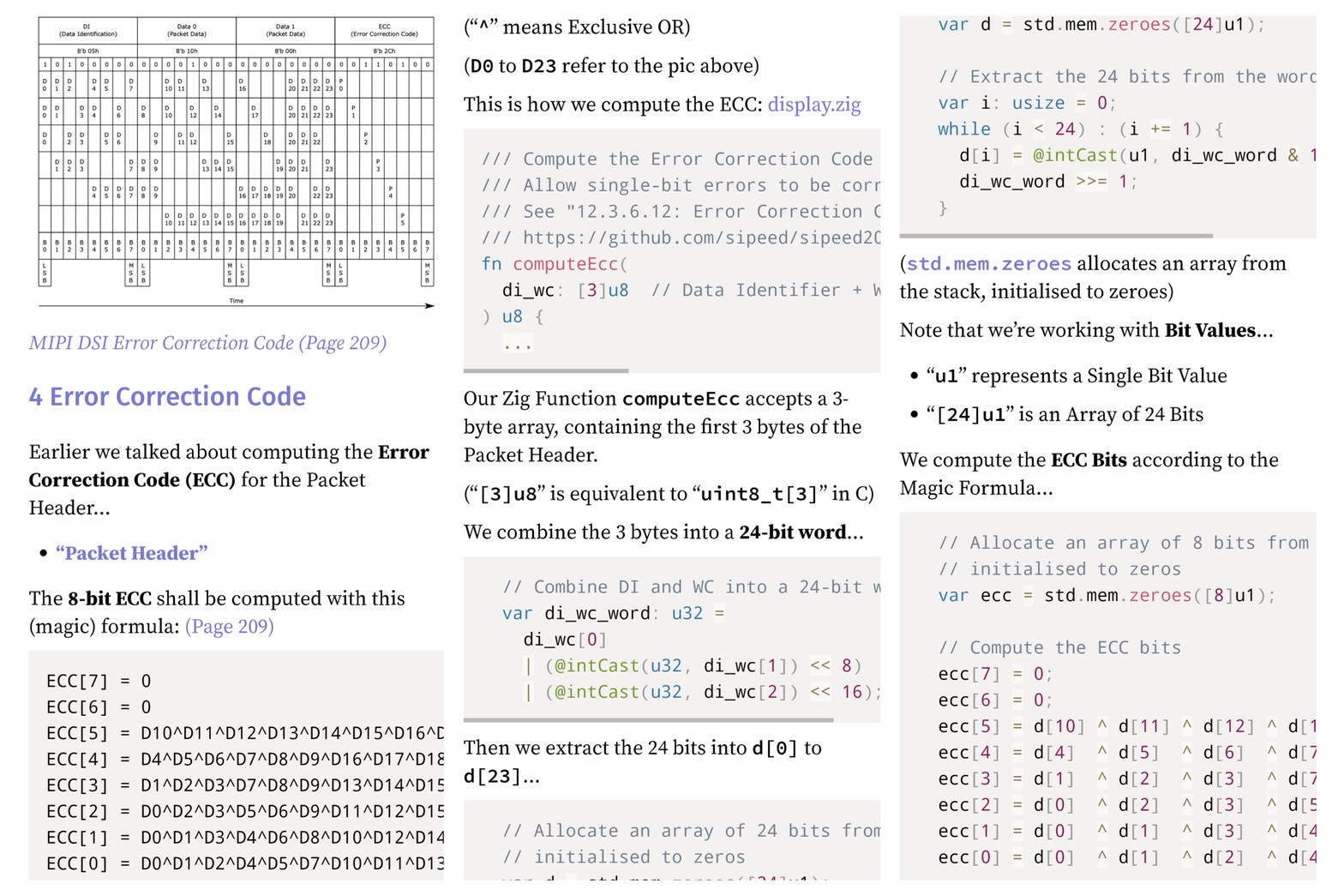 #ZigLang computes the Error Correction Code ... For MIPI DSI Packets on #PinePhone