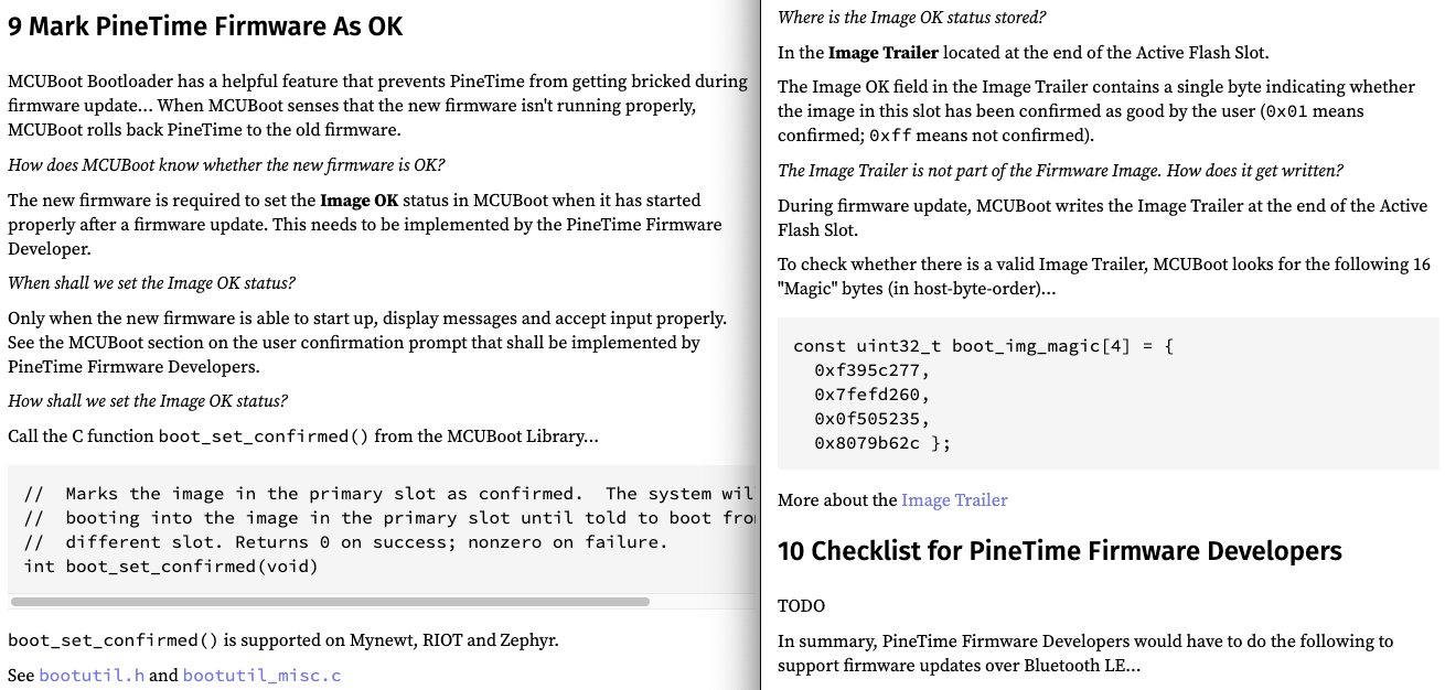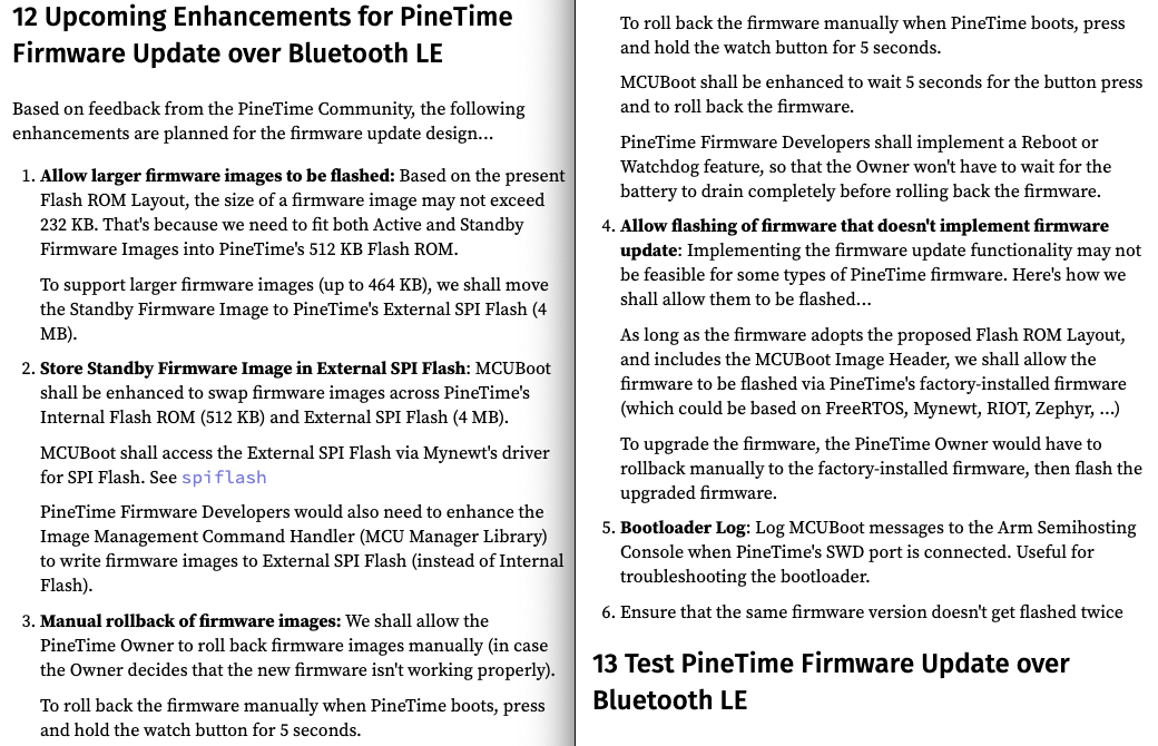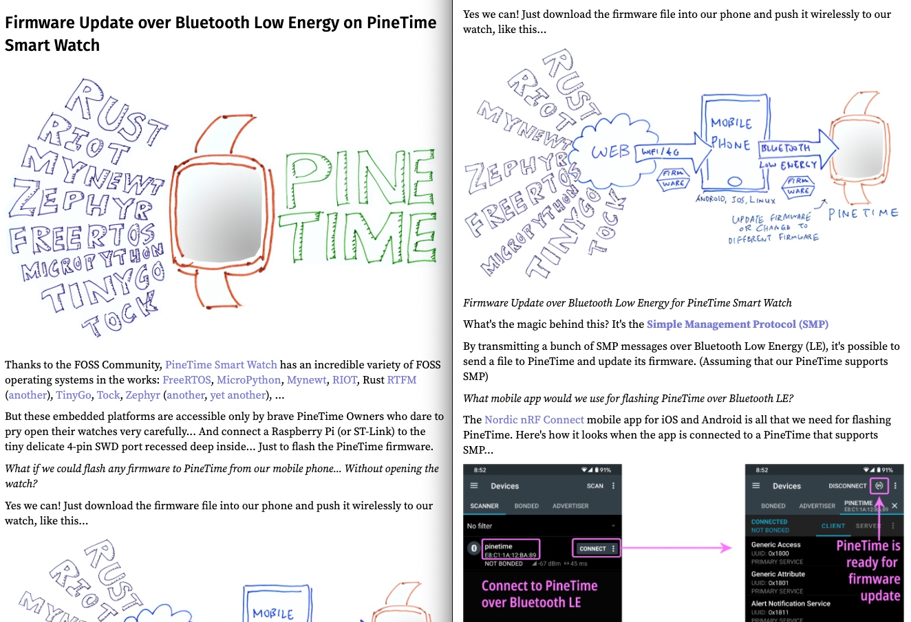 Hi #PineTime Firmware Devs: Here are the complete steps for supporting Firmware Updates over Bluetooth... PineTime Owners will ❤️ us for making the PineTime Smart Watch @PINE64 so fun and easy to learn and explore! 😀 https://lupyuen.github.io/pinetime-rust-mynewt/articles/dfu