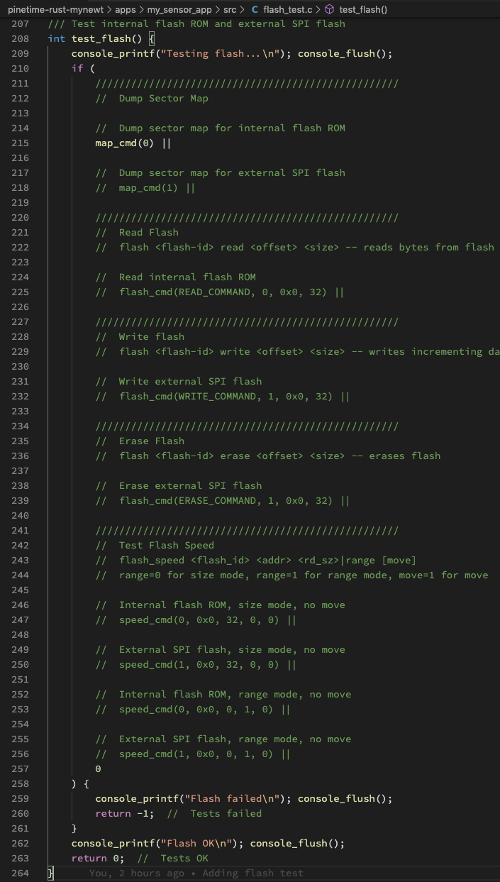 Here's how we'll test SPI Flash on #PineTime Smart Watch @PINE64 with @Apache_Mynewt https://github.com/lupyuen/pinetime-rust-mynewt/blob/ota2/apps/my_sensor_app/src/flash_test.c