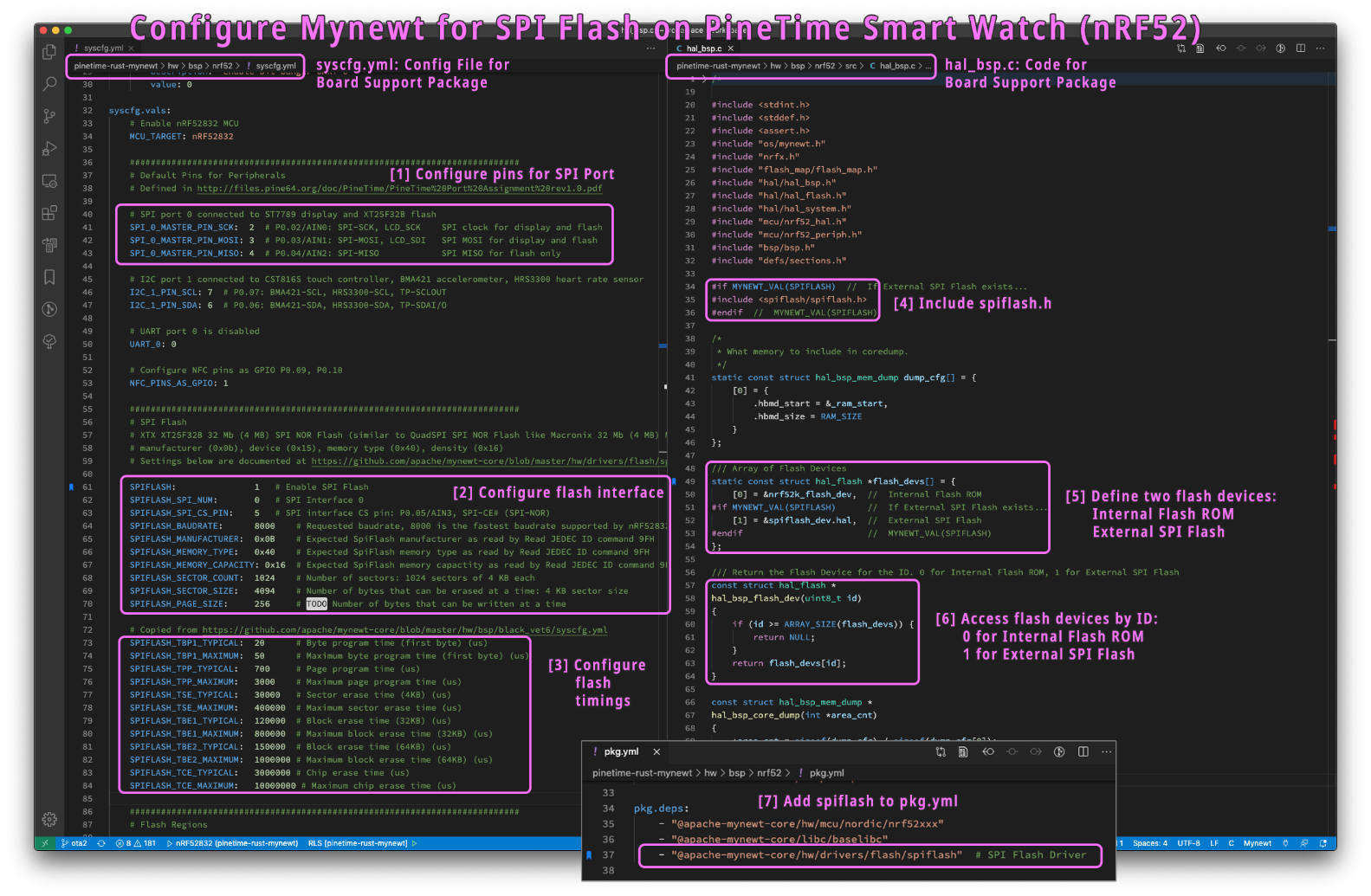 Here's how we configure the SPI Flash Interface on @Apache_Mynewt... Works for #PineTime Smart Watch @PINE64 and any #nRF52 board @NordicTweets https://lupyuen.github.io/pinetime-rust-mynewt/articles/spiflash