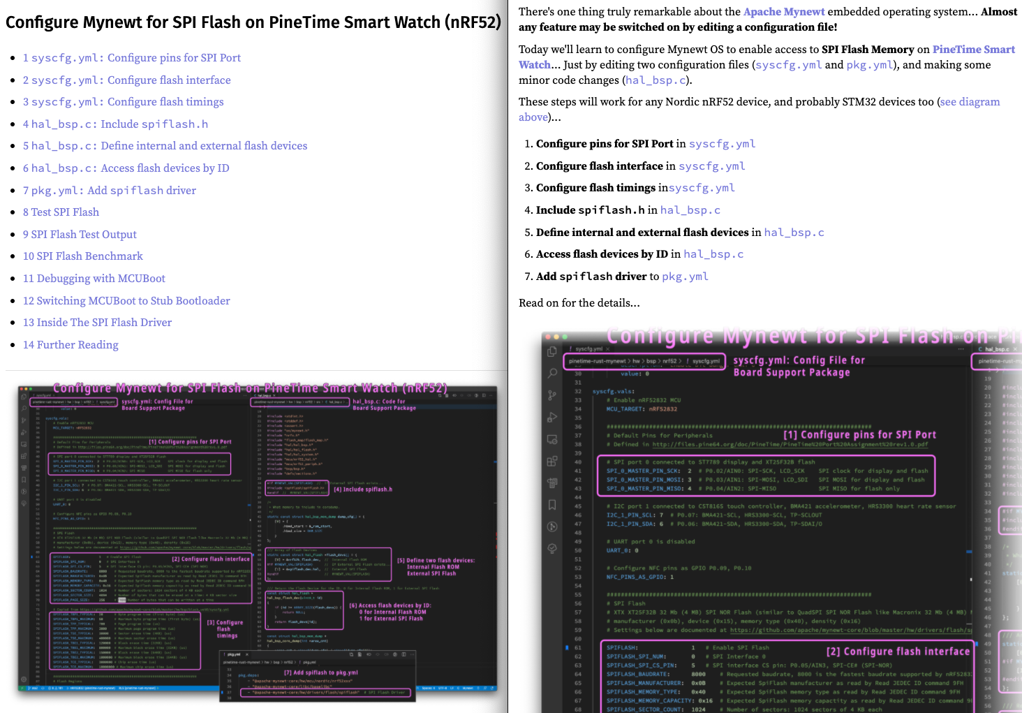 Tiny tweak to @Apache_Mynewt that enables SPI Flash... Works on #PineTime Smart Watch @PINE64 and other #nRF52 boards @NordicTweets https://lupyuen.github.io/pinetime-rust-mynewt/articles/spiflash