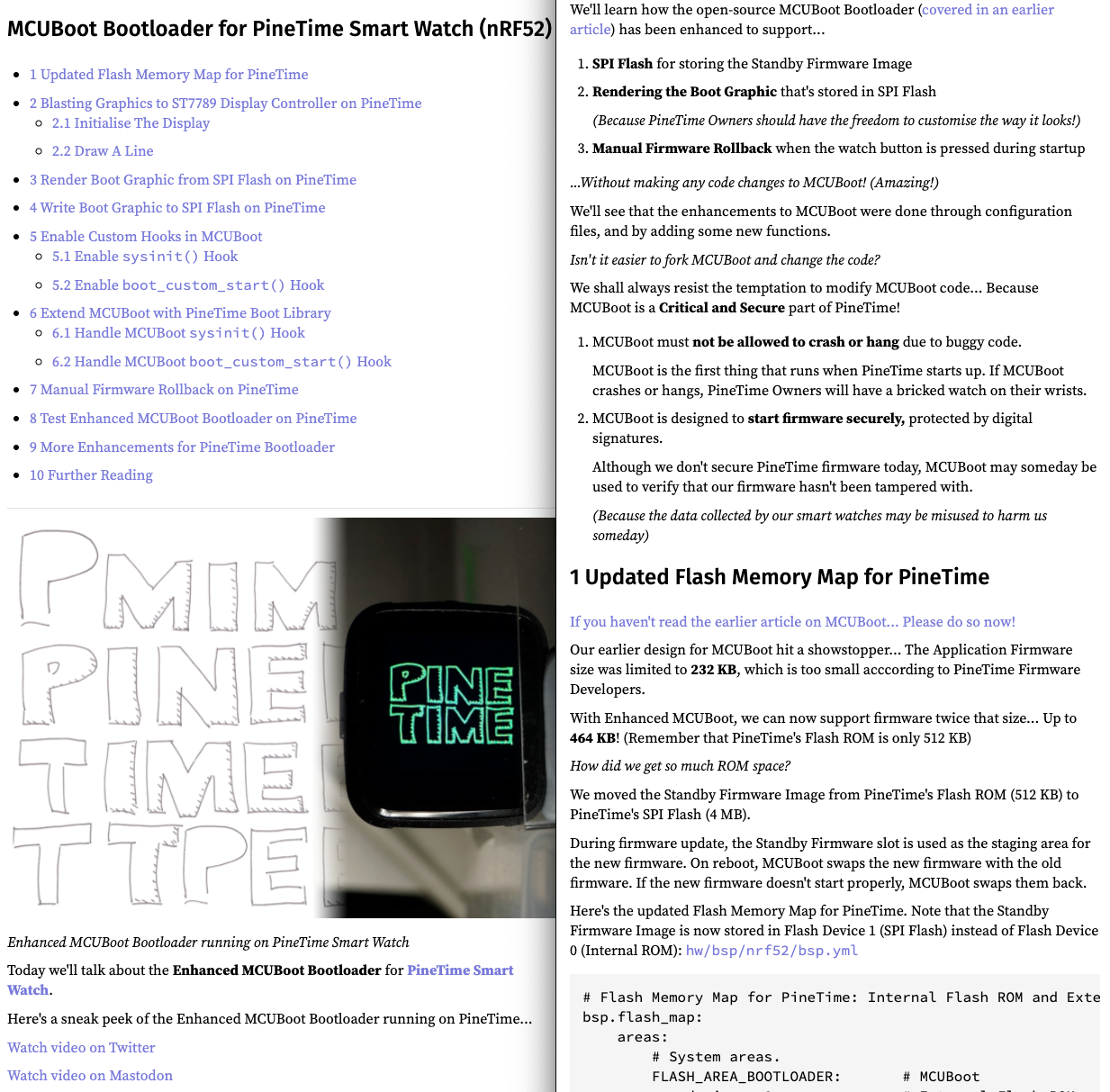 Wireless Firmware Updates done right on #PineTime Smart Watch @PINE64 ... With the open source #MCUBoot Bootloader from @Apache_Mynewt and @ZephyrIoT! Here are the complete details https://lupyuen.github.io/pinetime-rust-mynewt/articles/mcuboot