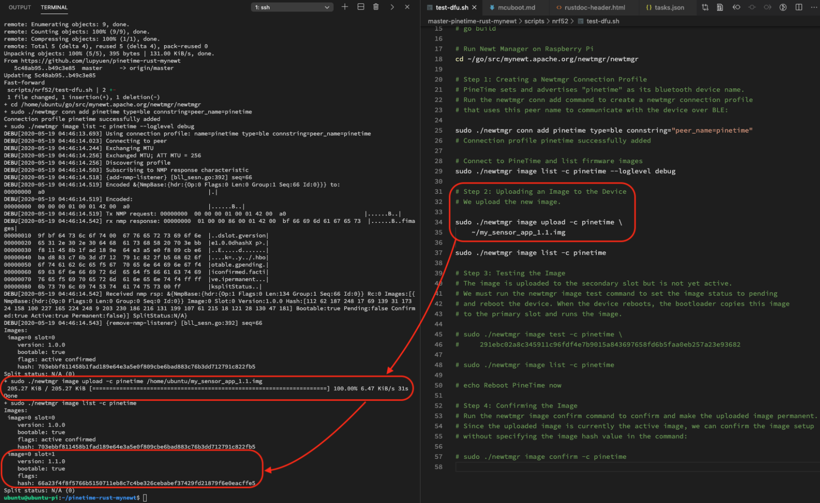#PineTime Smart Watch Firmware @PINE64 successfully updated over Bluetooth LE... With #NimBLE, #MCUBoot and @Apache_Mynewt yay! https://github.com/lupyuen/pinetime-rust-mynewt/blob/master/scripts/nrf52/test-dfu.sh