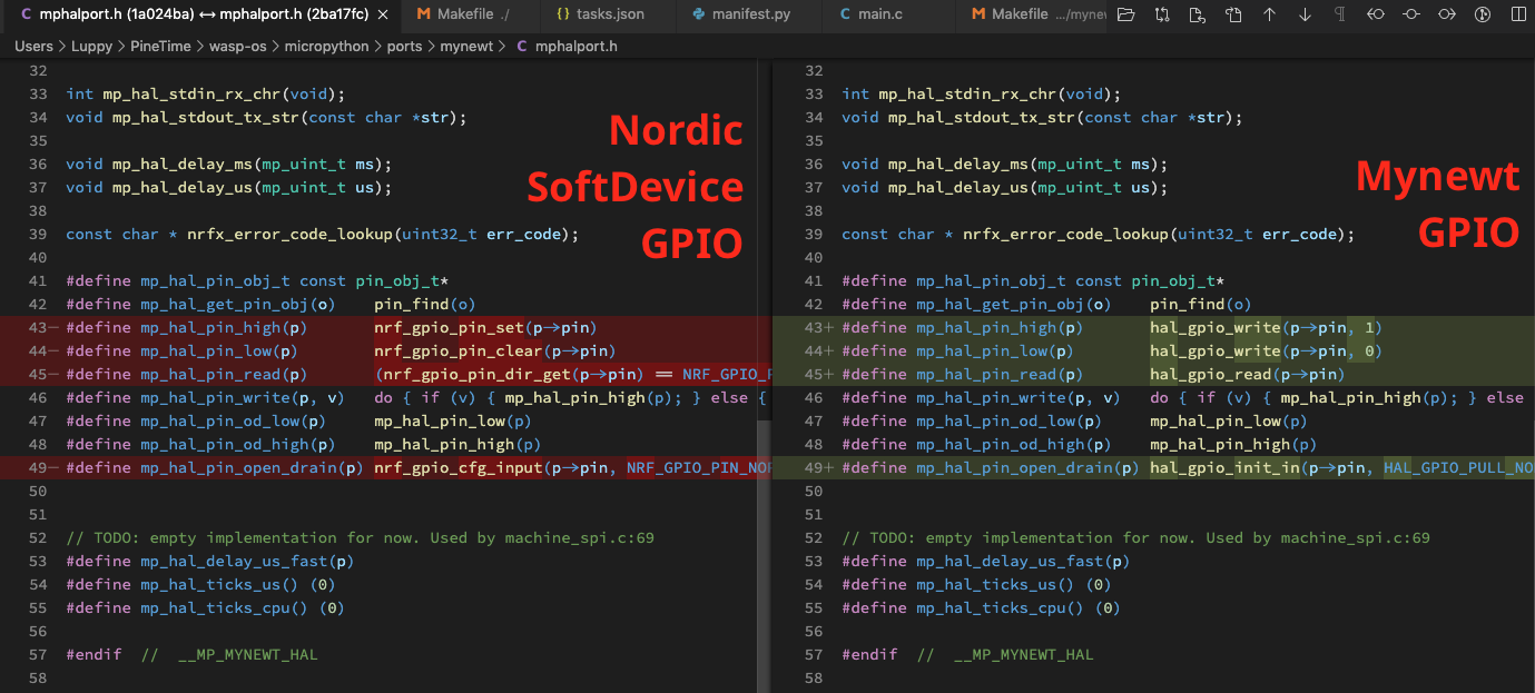 Porting @MicroPython from Nordic SoftDevice to @Apache_Mynewt on #PineTime Smart Watch @PINE64 ... Starting with GPIO https://github.com/AppKaki/micropython/blob/wasp-os/ports/mynewt/mphalport.h