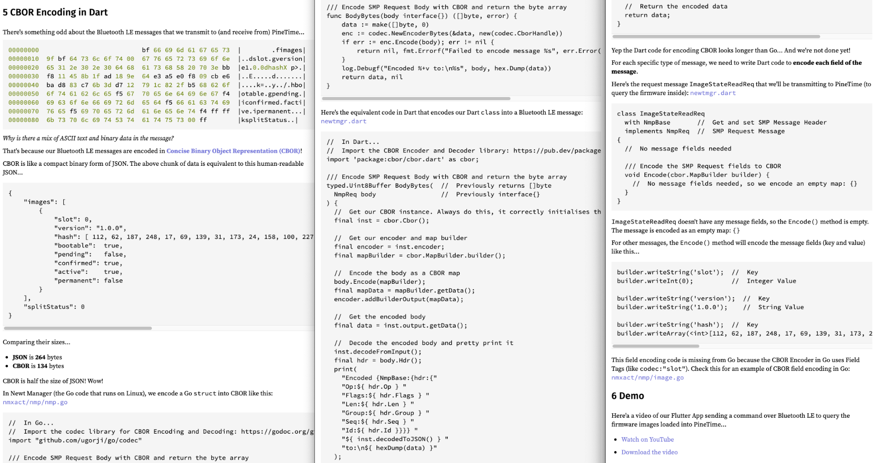 Encode CBOR Messages in #DartLang... That's how our #Flutter Companion App sends Bluetooth LE requests to #PineTime Smart Watch @PINE64 https://lupyuen.github.io/pinetime-rust-mynewt/articles/companion