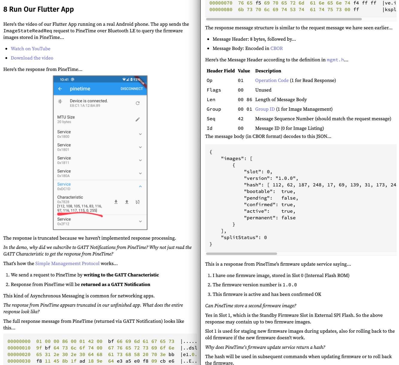 How our #Flutter App talks to the Firmware Update Service on #PineTime Smart Watch @PINE64 ... And how we decode the Bluetooth LE response https://lupyuen.github.io/pinetime-rust-mynewt/articles/companion