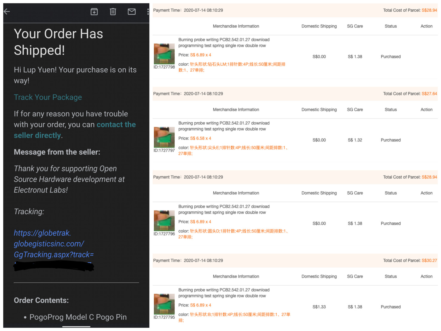 #PineTime Pogo Pins now flying from US and China to Singapore for testing... Many thanks to Naomi Wu and Makers around the world! 😀