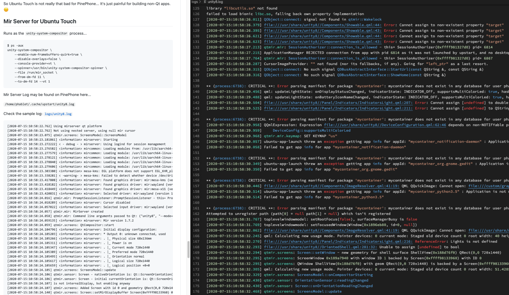 Got #UbuntuTouch problems on #PinePhone @PINE64 ? Check the Mir Server logs: https://github.com/lupyuen/pinephone-mir/blob/master/README.md