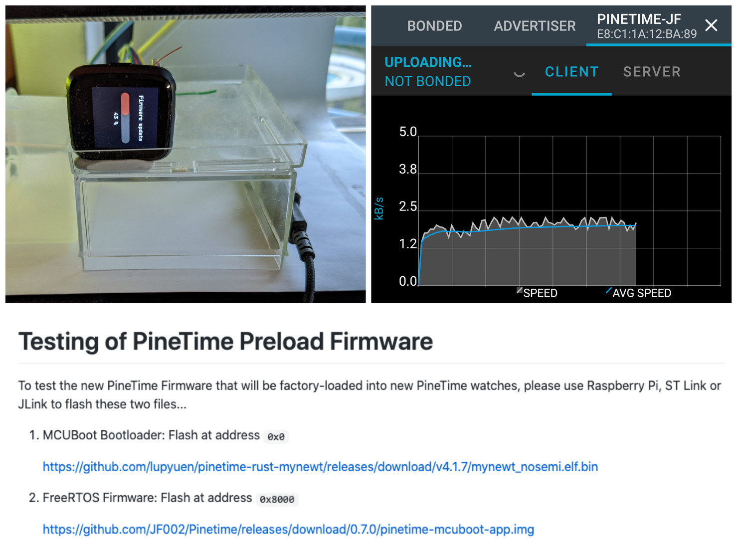 #PineTime OTA DFU tested OK yay! Time to preload the new firmware by @JF at the PineTime Factory @PINE64 😀 https://gist.github.com/lupyuen/fb4cc04f03219d913cba8ec371f8c644