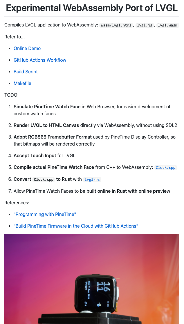 Plans for #PineTime Watch Face Simulator... With #WebAssembly and #LVGL 7 https://github.com/AppKaki/lvgl-wasm/blob/master/README.md