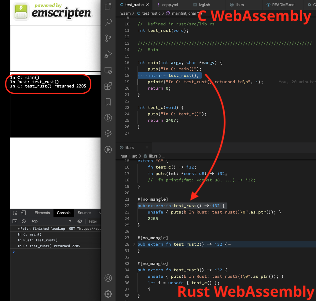 #CLang #WebAssembly calls #RustLang... Works only with "cargo build --target=wasm32-unknown-emscripten" https://github.com/AppKaki/lvgl-wasm/blob/master/README.md