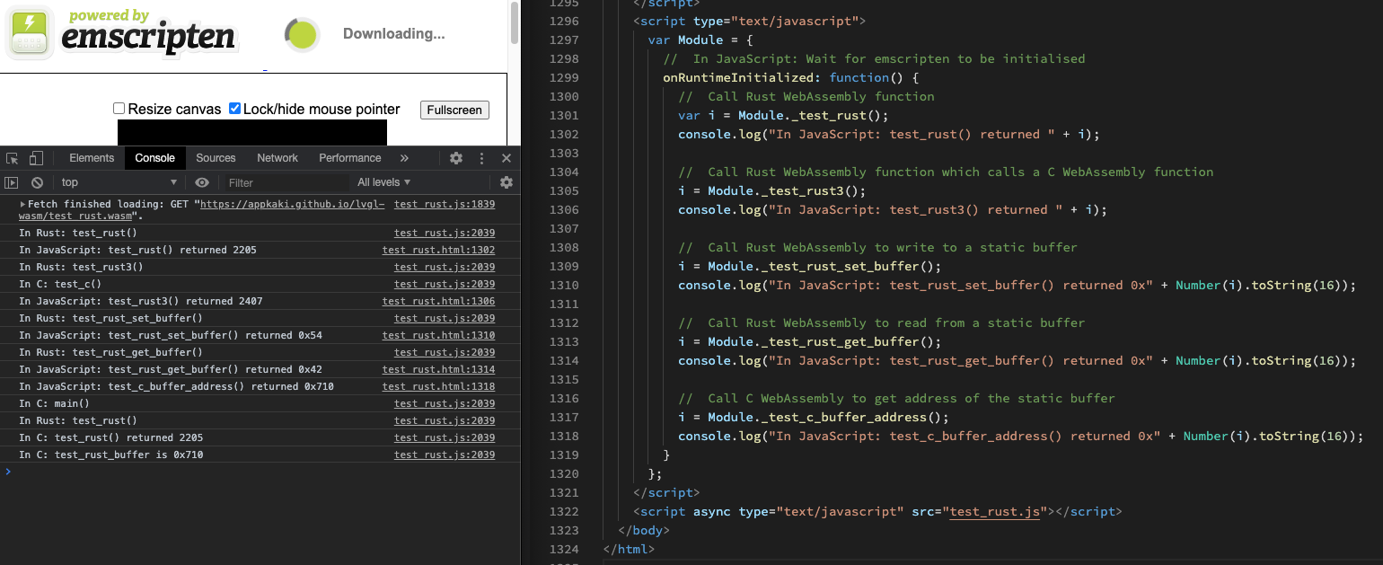 JavaScript calls #RustLang #WebAssembly... Which calls #CLang WebAssembly https://github.com/AppKaki/lvgl-wasm/blob/master/README.md