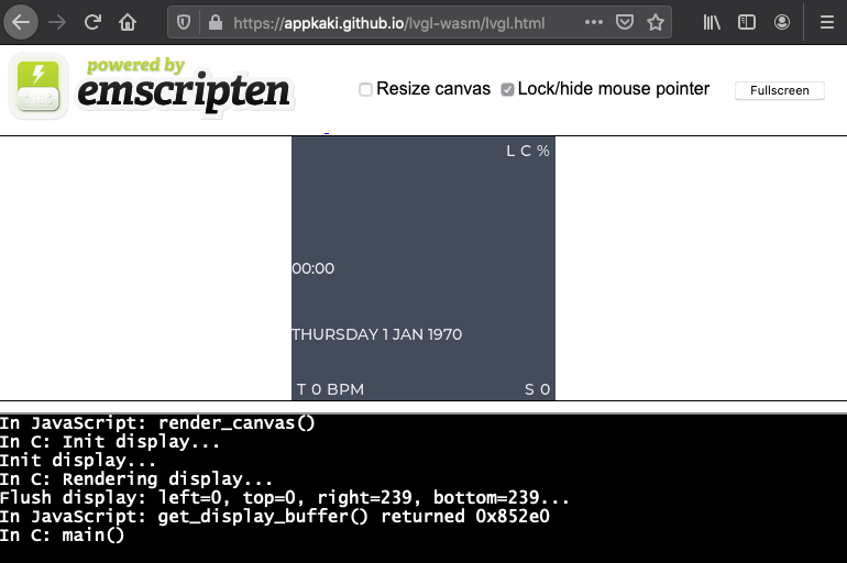 #LVGL now renders to HTML Canvas with #WebAssembly yay! Next: Compile a real #PineTime Watch Face @PINE64 from C++ to WebAssembly https://github.com/AppKaki/lvgl-wasm/blob/master/README.md