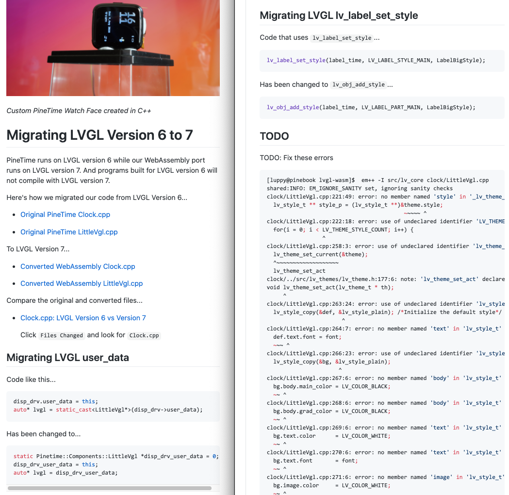 Some #LVGL v6 programs may fail to build with v7... Here are some Migration Tips we used for #PineTime https://github.com/AppKaki/lvgl-wasm#migrating-lvgl-version-6-to-7