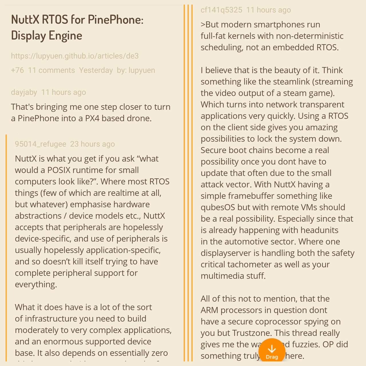 Apache #NuttX Kernel Driver for #PinePhone Display Engine @PINE64 ... Looking great! 👍