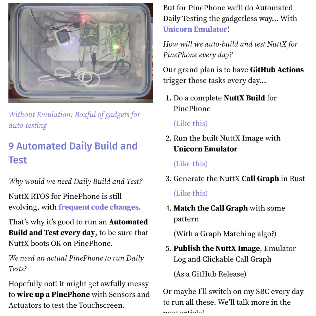 Automated Daily Build and Test of #PinePhone on Apache #NuttX RTOS ... How we'll do it with Unicorn Emulator