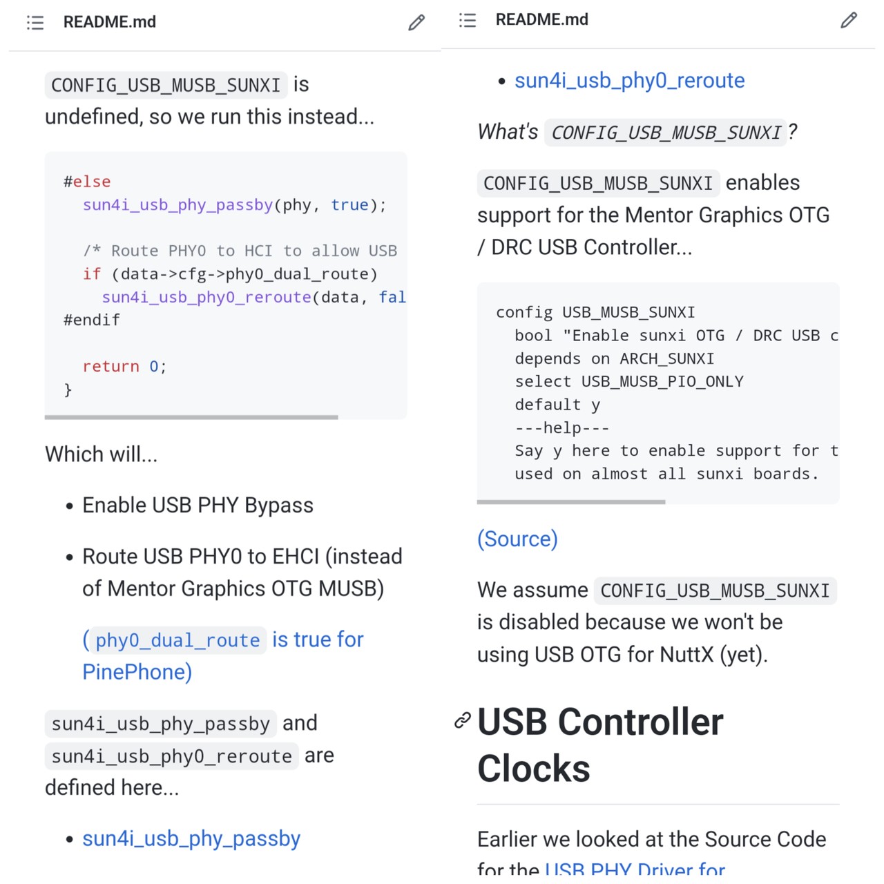 How we fixed the #PinePhone USB Driver for Apache #NuttX RTOS ... Just start the USB Clocks and deassert the USB Resets