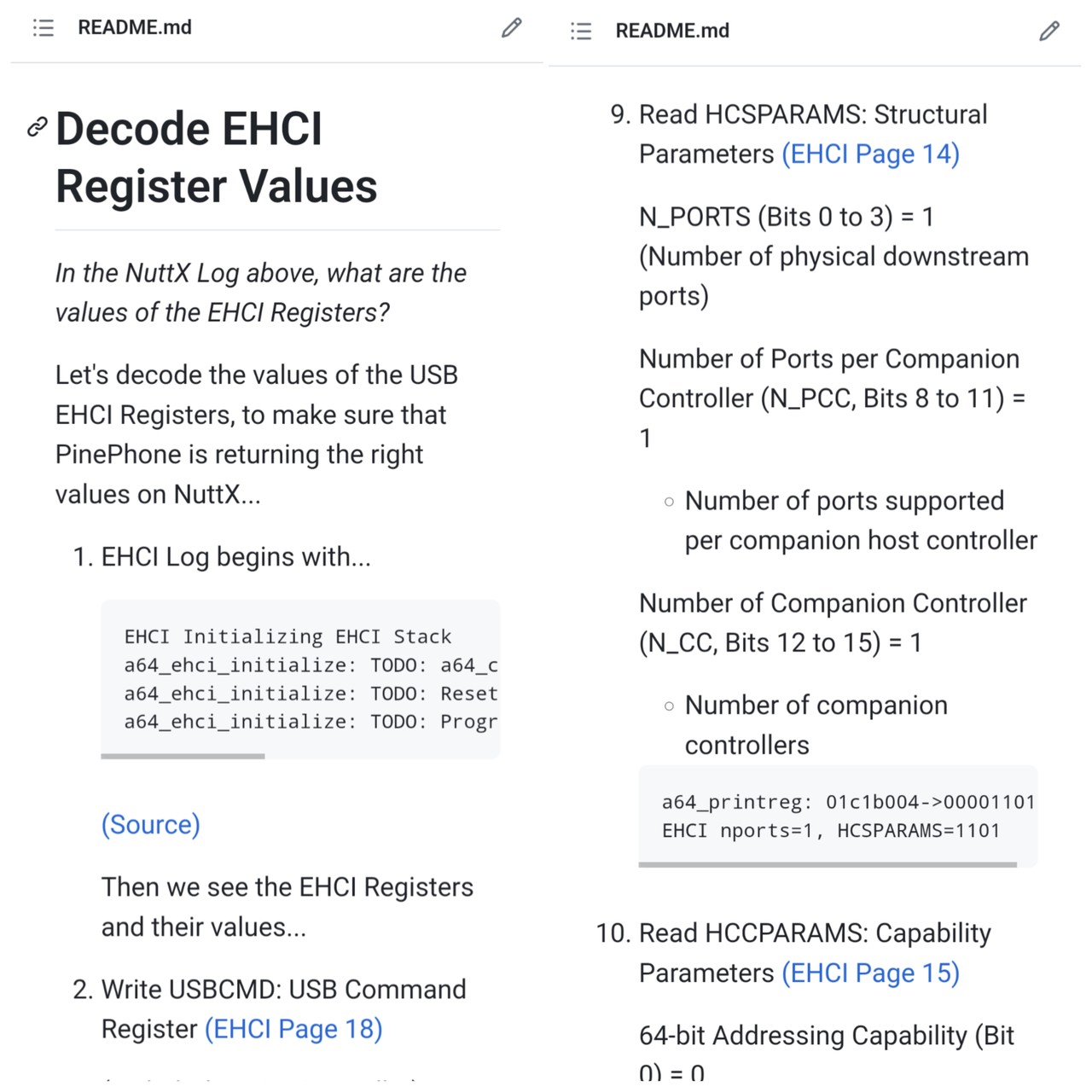 Deciphering the USB EHCI Registers on #PinePhone ... That were logged by Apache #NuttX RTOS