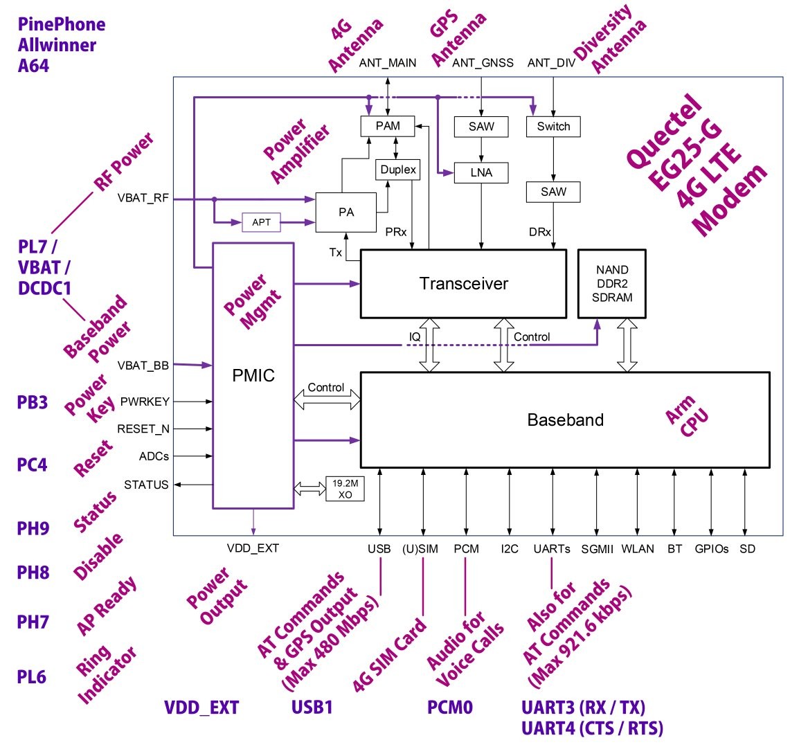 #PinePhone talks to Quectel EG25-G 4G LTE Modem on these pins