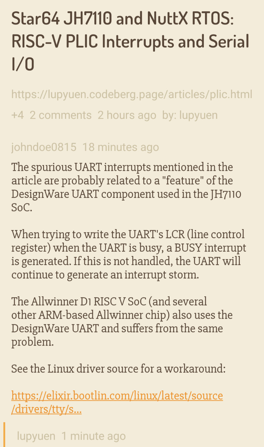 How we fixed the Spurious UART Interrupts on #RISCV Star64 #JH7110 and Apache #NuttX RTOS