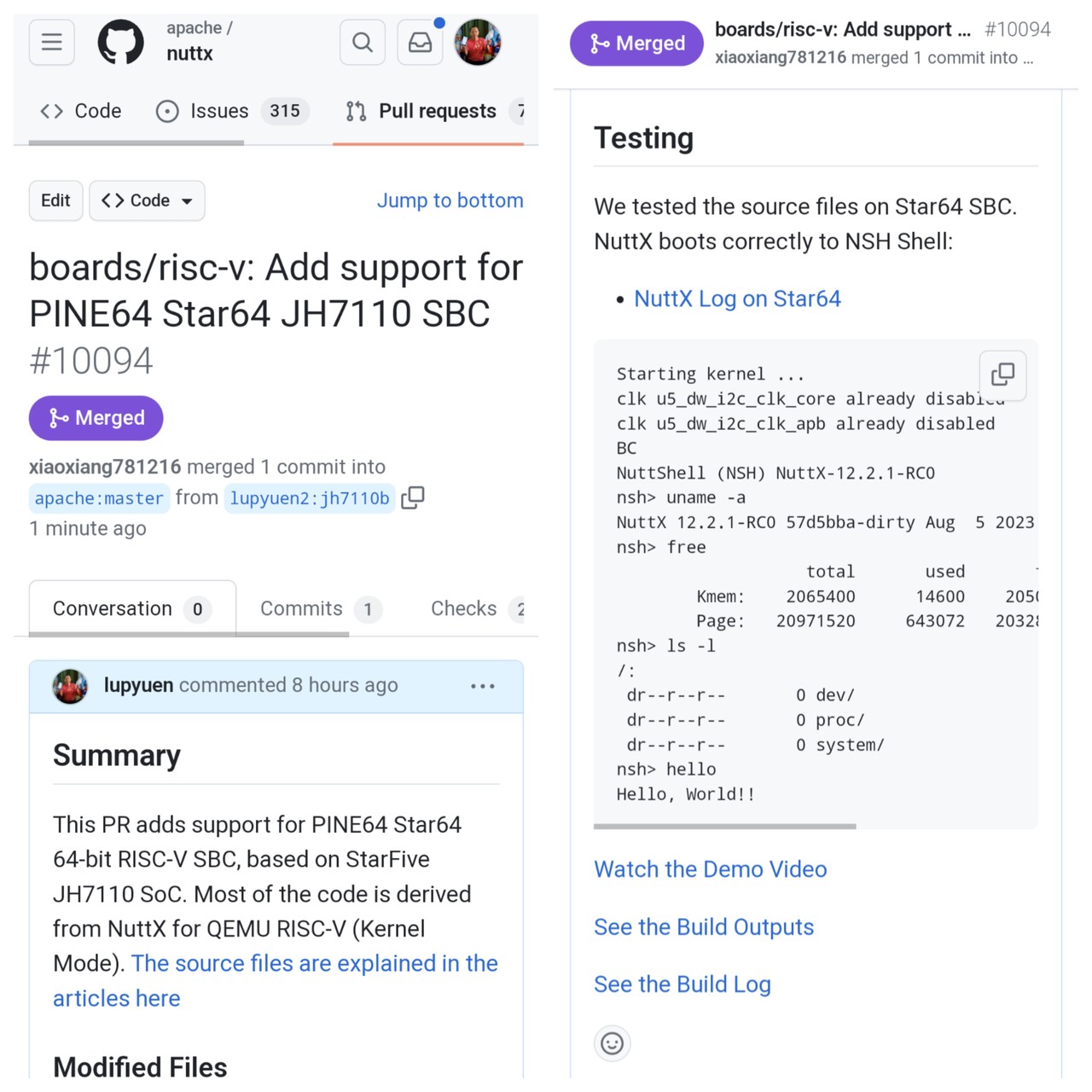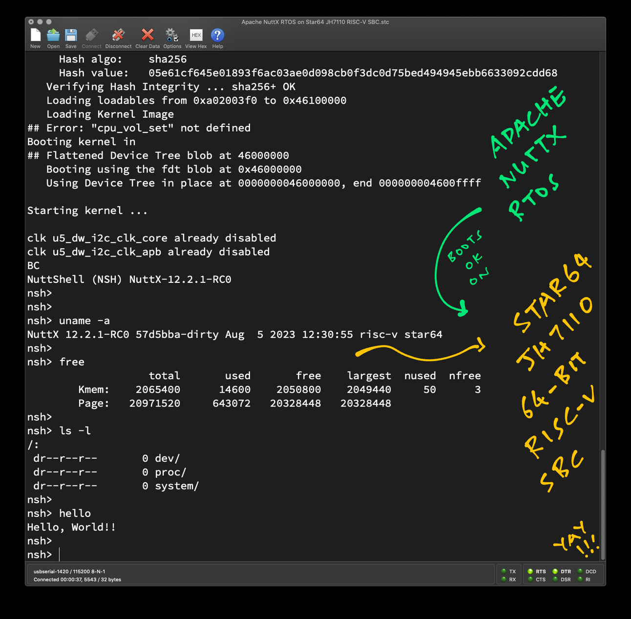 Booting #RISCV Star64 #JH7110 SBC ... With Apache #NuttX RTOS 🎉