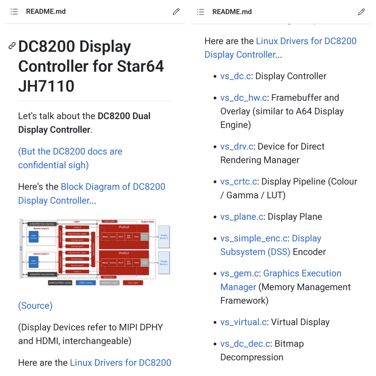 Inside Star64 #JH7110 is the DC8200 Dual Display Controller ... Which is totally undocumented 🙄