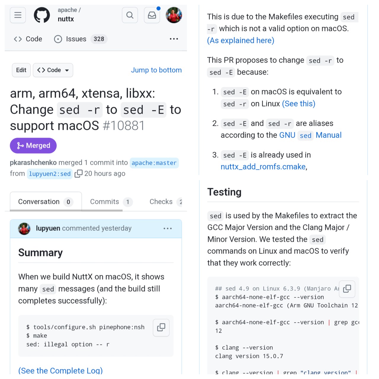 "sed" on macOS ... Causing issues again for #NuttX Build 😬